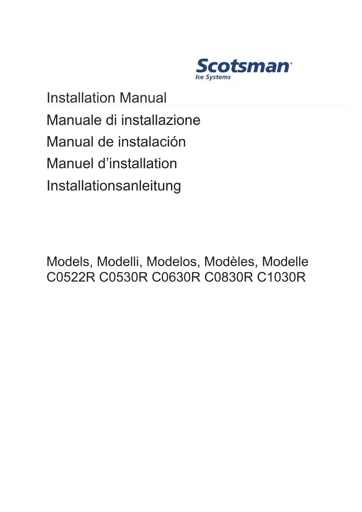 C0530, C0630, C0830, C1030 Ne s’adapte pas directement KBT44 Autres bacs & applications : Notez l’emplacement de la zone de chute et du détecteur ultrasonique en option dans les illustrations. Scotsman n’assume aucune responsabilité légale de quelque sorte que ce soit pour les produits fabriqués par Scotsman qui ont été modifiés de quelque manière que ce soit, y compris l’utilisation de toute pièce et/ou autre composant qui n’est pas spécifiquement approuvé par Scotsman. Scotsman se réserve le droit d’apporter quand cela s’avère nécessaire, des modifications de conception et/ou des améliorations. Ces spécifications et conceptions sont sujettes à modification sans préavis. Août 2006 Page 3 C0522 à C1030 Manuel d’installation des modèles refroidis à l’air et à l’eauC0522 Dimension des coffrets Juin 2007 Page 4 C0522 à C1030 Manuel d’installation des modèles refroidis à l’air et à l’eau Remarque : Le numéro du haut est en centimètres, celui du bas en pouces. C0522 Vue latérale C0522 Vue arrière Vue du hautC0530, C0630, C0830 et C1030 Dimension des coffrets Juin 2007 Page 5 C0522 à C1030 Manuel d’installation des modèles refroidis à l’air et à l’eau Remarque : Le numéro du haut est en centimètres, celui du bas en pouces. C0530, C0630 Vue arrière C0830, C1030 Vue arrière Vue du hautDescription du produit et conditions électriques Dimensions (cm) l x p x h Modèle Informations électriques Utiliser un condenseur Taille maximale de fusible 57,7*** x 61 x 58,5 C0522MR-6 230/50/1 ERC111-6 15 pareil pareil pareil ERC211-6** 15 78*** x 61 x 58,5 C0530MR-6 pareil ERC111-6 15 pareil pareil pareil ERC211-6** 15 pareil C0630MR-6 pareil ERC311-6 20 78*** x 61 x 74 C0830MR-6 pareil ERC311-6 30 pareil C1030MR-6 pareil ERC311-6 20 ** ERC211 comprend deux circuits, lorsque deux C0522s ou C0530s lui sont connectés, le kit de moteur de ventilation KCMR-230 doit être utilisé pour contrôler le moteur de ventilation. *** Largeur maximale au niveau du panneau supérieur. Les caractéristiques nominales comprennent le moteur du condenseur installé à distance, puisqu’il est conçu pour être entraîné par la machine à glaçons. Si vous branchez le condenseur installé à distance indépendamment de la machine à glaçons, utilisez les informations figurant sur la plaque signalétique du condenseur pour connaître les tailles de fusible et de câble. Remarques sur le tableau : Les modèles de cubes de taille intermédiaire ont les mêmes caractéristiques que celles des petits cubes. Code de révision de série omis. Tous les condenseurs répertoriés comprennent un robinet de contrôle de tête. Kits de tuyaux préchargés : Les circuits de réfrigération de la partie supérieure de la machine à glaçons et du condenseur installé à distance doivent être connectés. Ils sont conçus pour être connectés à l’aide de tuyaux de fluide frigorigène préchargé, fourni dans les kits de tuyaux de fluides et d’évacuation. Plusieurs longueurs sont disponibles, commandez celle qui dépasse juste un peu la longueur nécessaire pour votre installation. 3 mètres 6 mètres 12 mètres 22 mètres