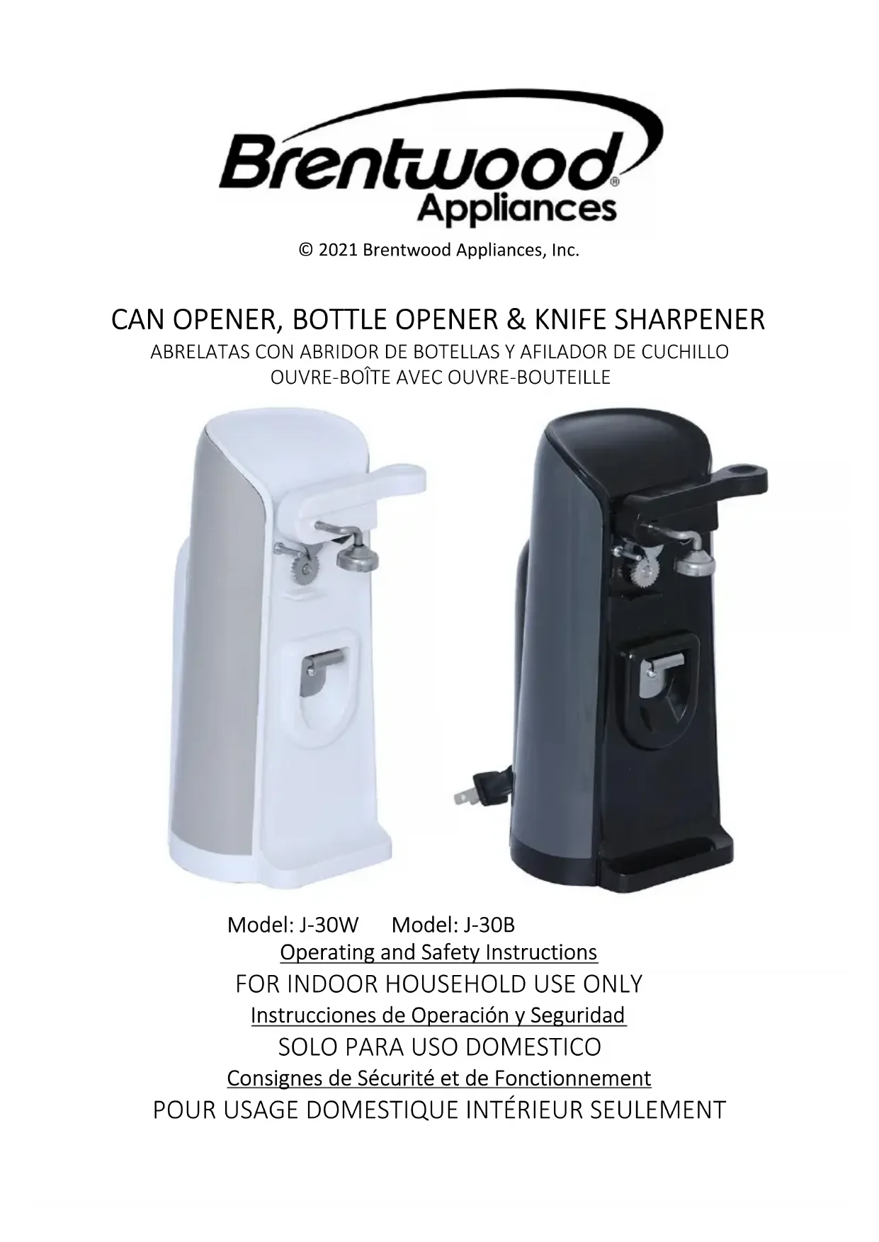 J-30W - Ouvre-boîte Brentwood - Notice d'utilisation et mode d'emploi gratuit