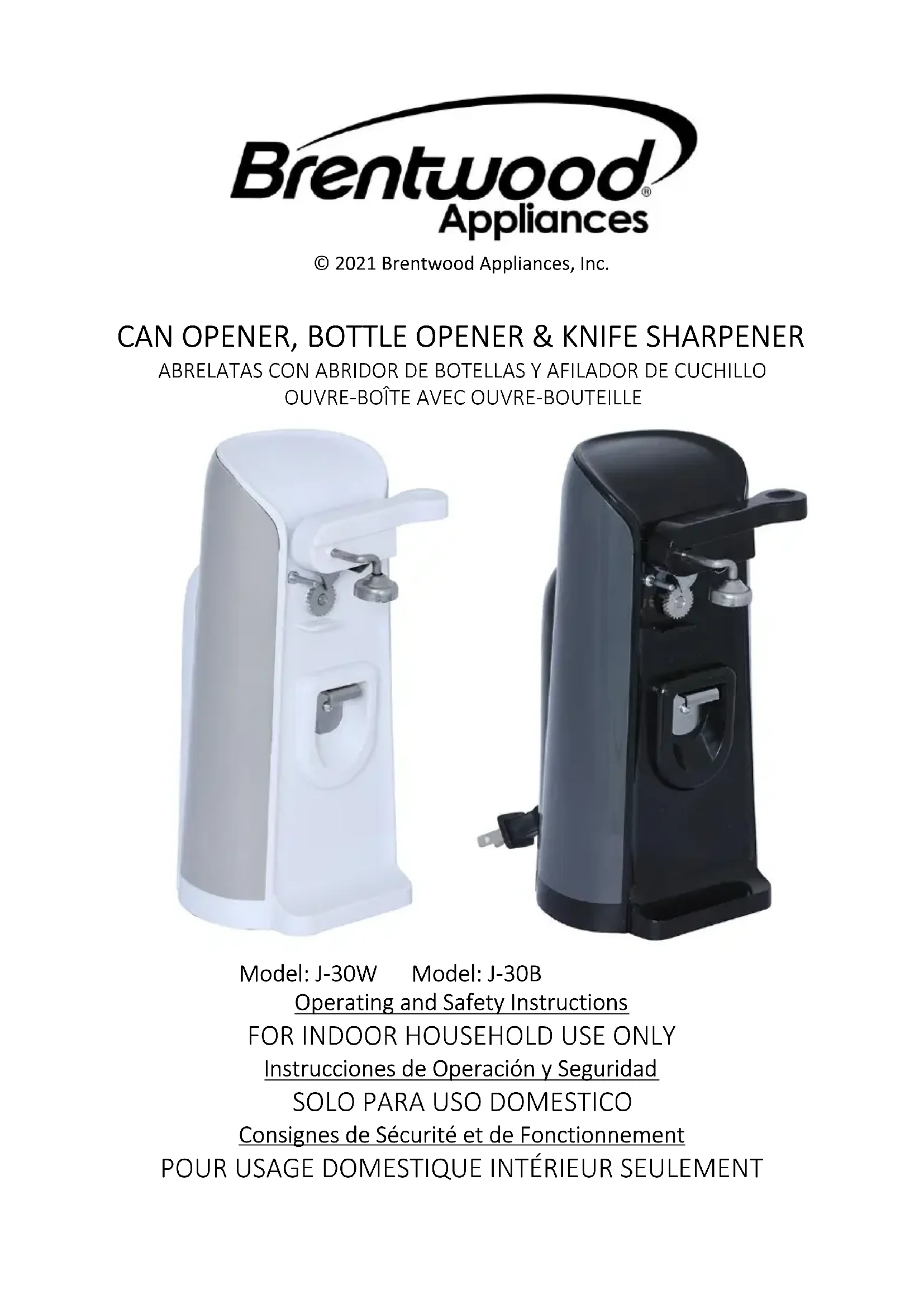 J-30B - Ouvre-boîte Brentwood - Notice d'utilisation et mode d'emploi gratuit