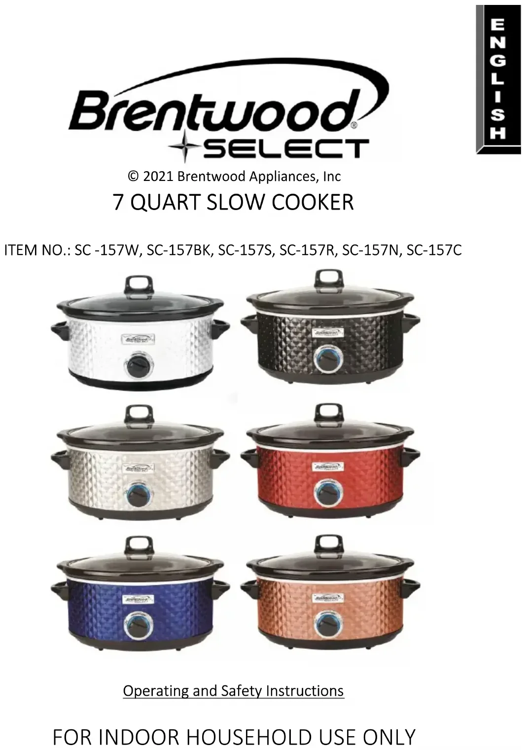 SC-157R - Mijoteuse Brentwood - Notice d'utilisation et mode d'emploi gratuit