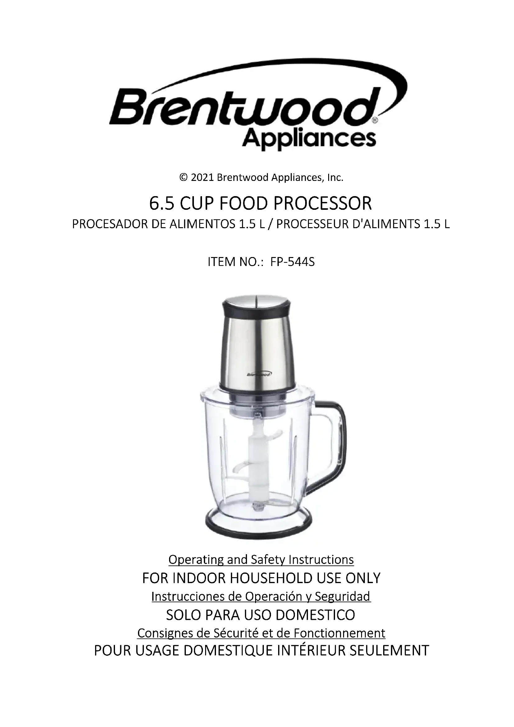FP-544S - Robot ménager Brentwood - Notice d'utilisation et mode d'emploi gratuit