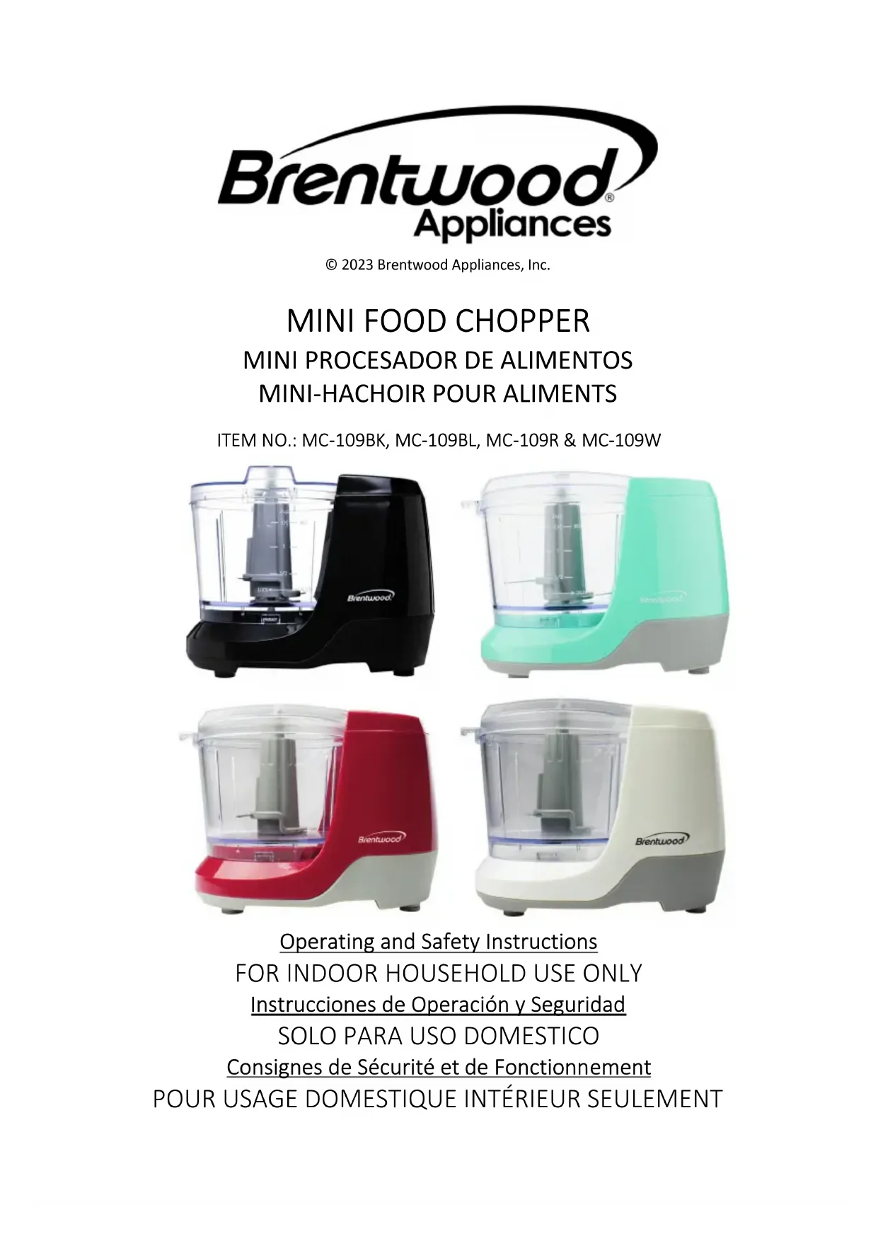 MC-109BK - Robot ménager Brentwood - Notice d'utilisation et mode d'emploi gratuit