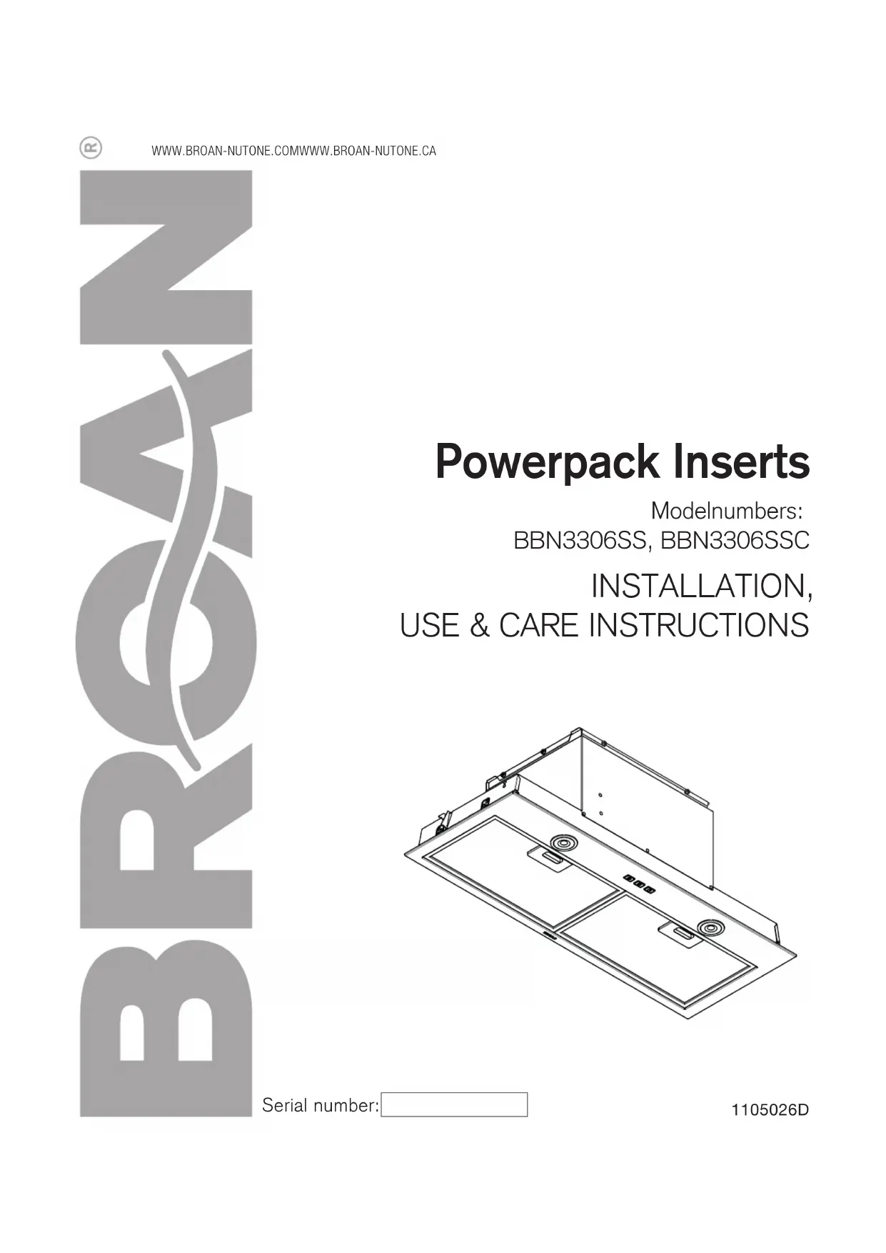 HB0385 Nº de série : 1105026D Hottes encastrées Numéros de modèle : BBN3306SS, BBN3306SSCDIRECTIVES D’INSTALLATION, D’UTILISATION ET D’ENTRETIEN