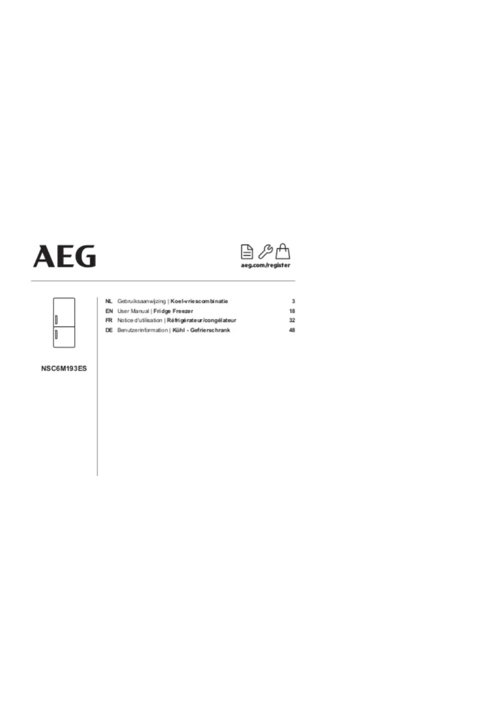 NSC6M193ES - Congélateur AEG - Notice d'utilisation et mode d'emploi gratuit