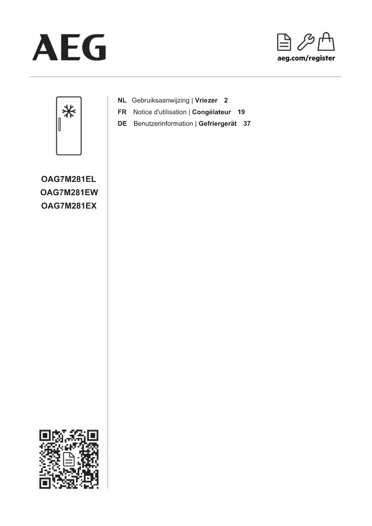 OAG7M281EX - Congélateur AEG - Notice d'utilisation et mode d'emploi gratuit