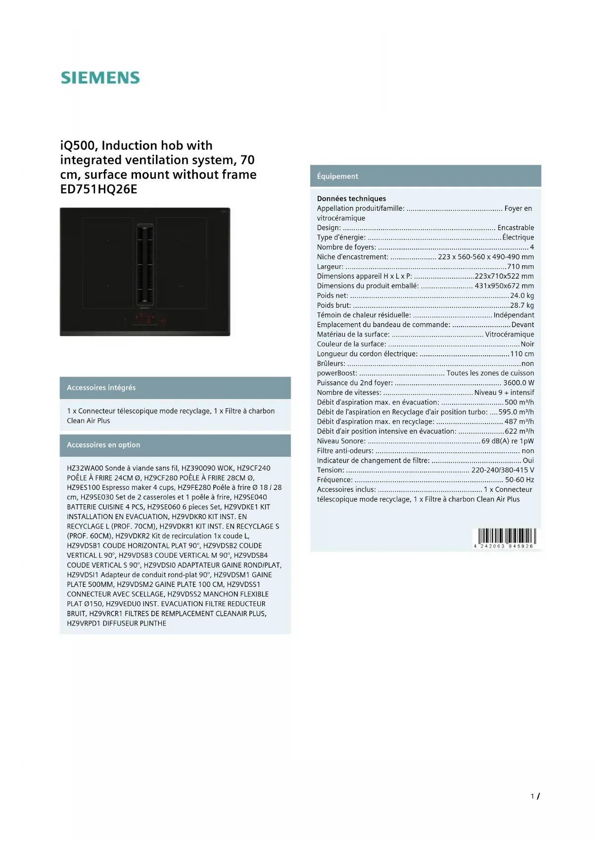 Retrouvez gratuitement la notice de l'appareil ED751HQ26E SIEMENS au format PDF.