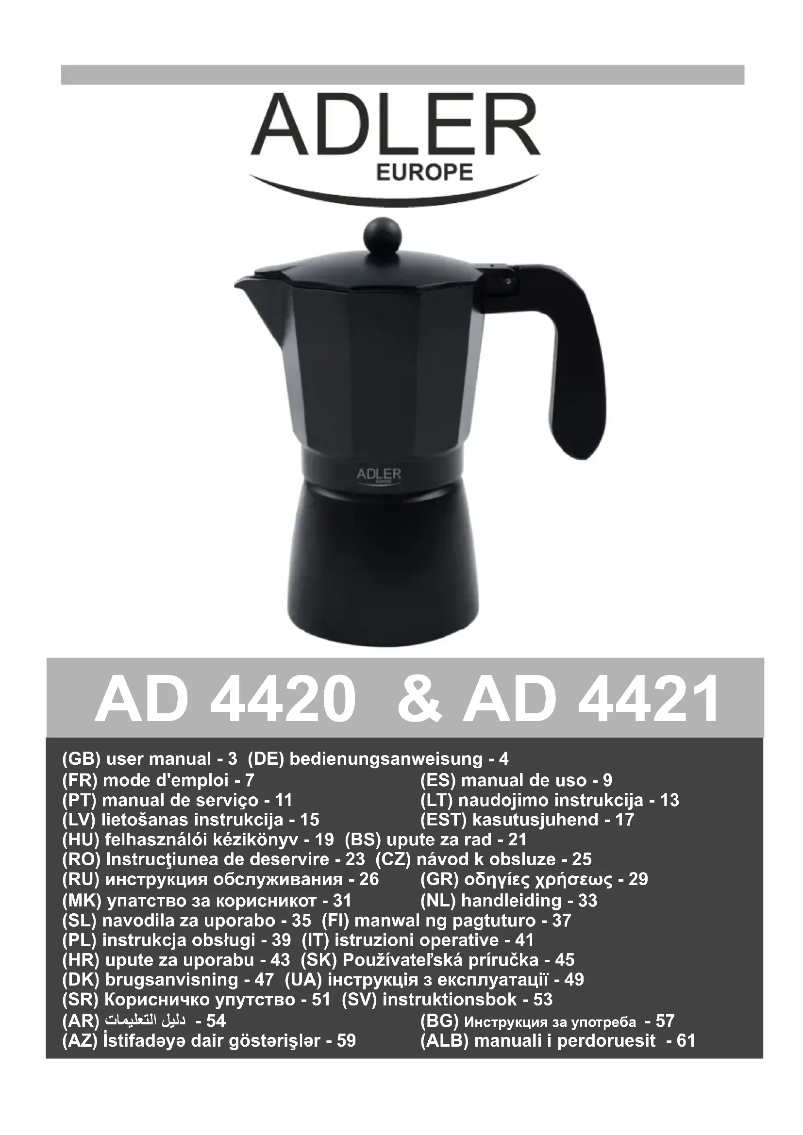 AD 4420 - Machine à café ADLER - Notice d'utilisation et mode d'emploi gratuit