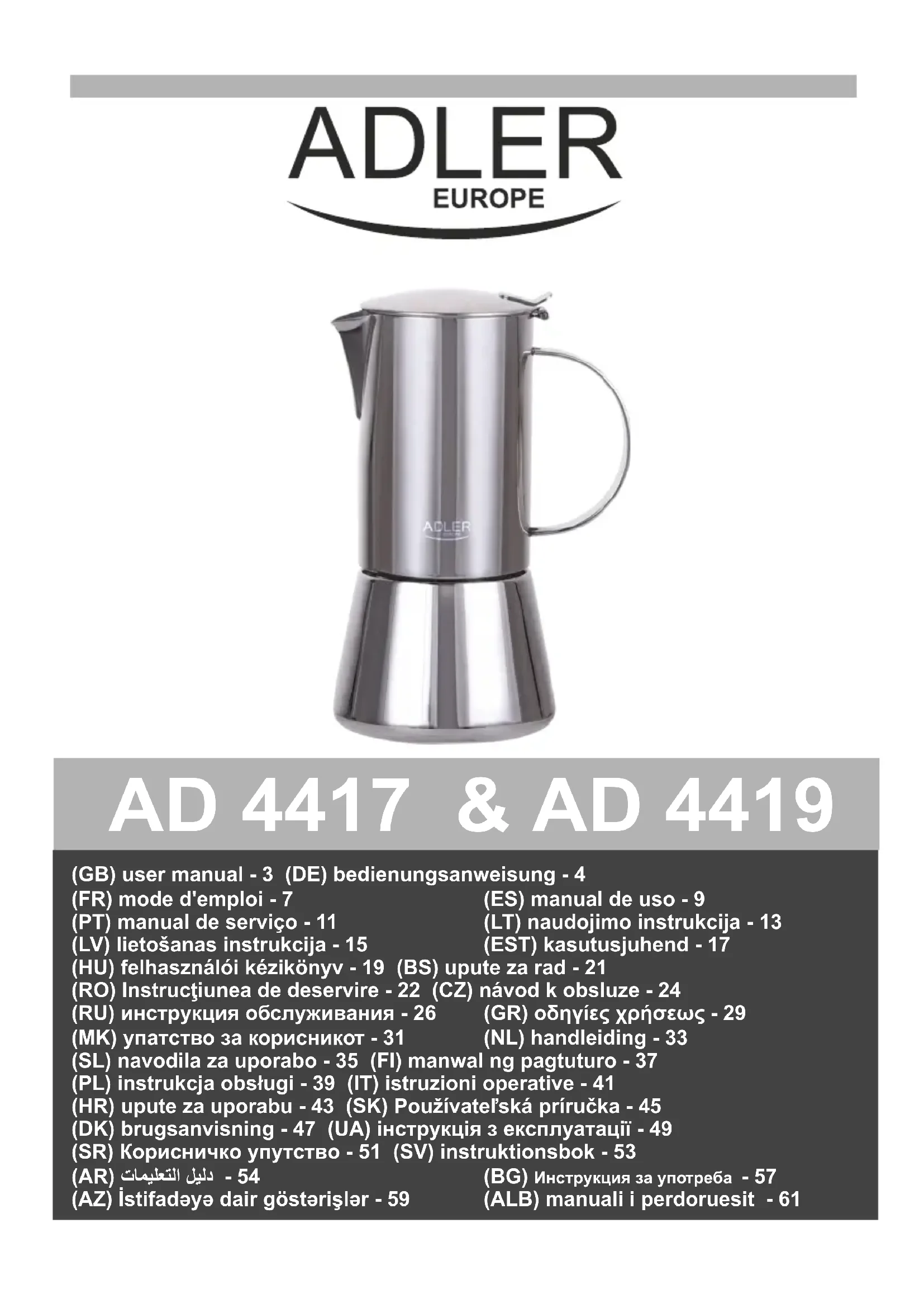 AD 4419 - Machine à café ADLER - Notice d'utilisation et mode d'emploi gratuit