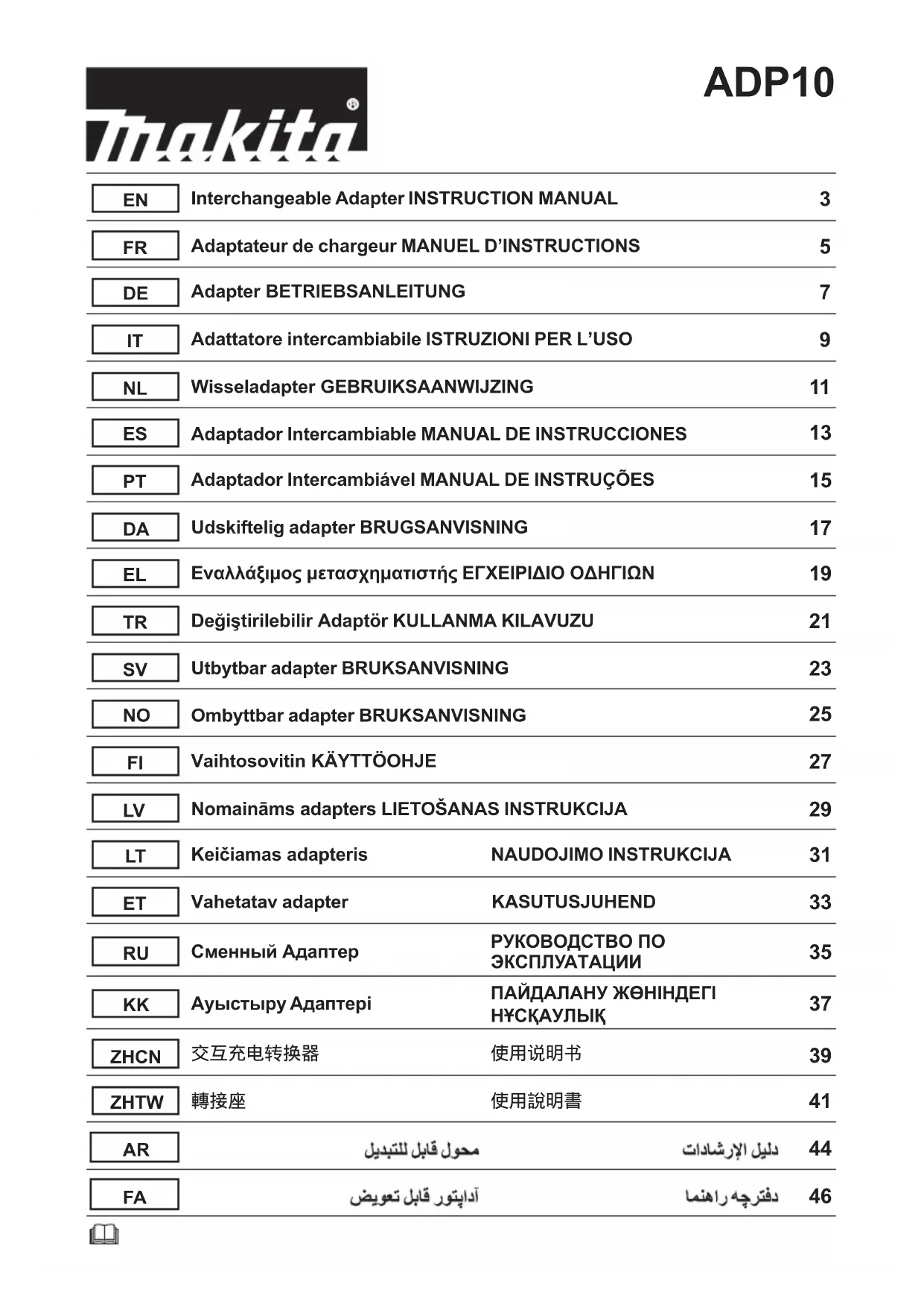Téléchargez la notice de votre Chargeur de piles au format PDF gratuitement ! Retrouvez votre notice ADP10 - MAKITA et reprennez votre appareil électronique en main. Sur cette page sont publiés tous les documents nécessaires à l'utilisation de votre appareil ADP10 de la marque MAKITA.