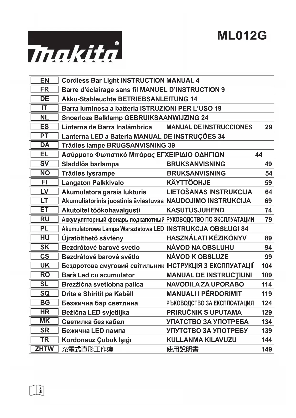 ML012G - Éclairage MAKITA - Notice d'utilisation et mode d'emploi gratuit