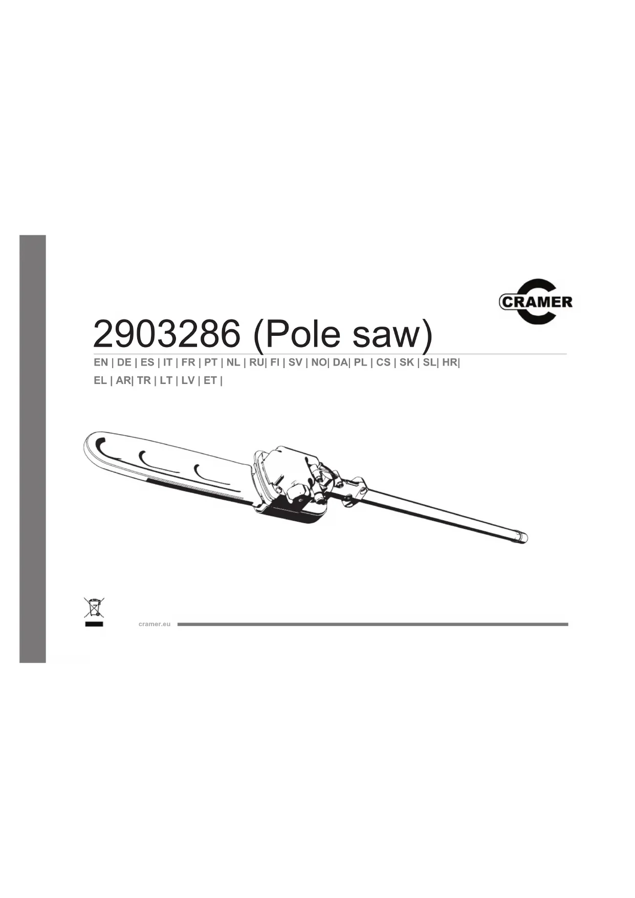 - Veillez à bien serrer les colliers avant d’utiliser l’appareil ; vérifiez régulièrement qu’ils restent serrés au cours du travail afin d’éviter tout risque de graves blessures. Instructions pour L’assemblage Installez la tête de scie télescopique (Voir Figure 2) 1 Retirez la protection en caoutchouc. 2 Desserrez la commande du coupleur. 3 Appuyez sur le bouton de déverrouillage situé sur l’axe inférieur. Alignez le bouton de déverrouillage avec l’orifice de positionnement puis assemblez les deux axes. Tournez l’axe inférieur jusqu’à ce que le bouton se verrouille dans l’orifice correspondant. 4 Serrez fermement le bouton.15 cramer.eu
