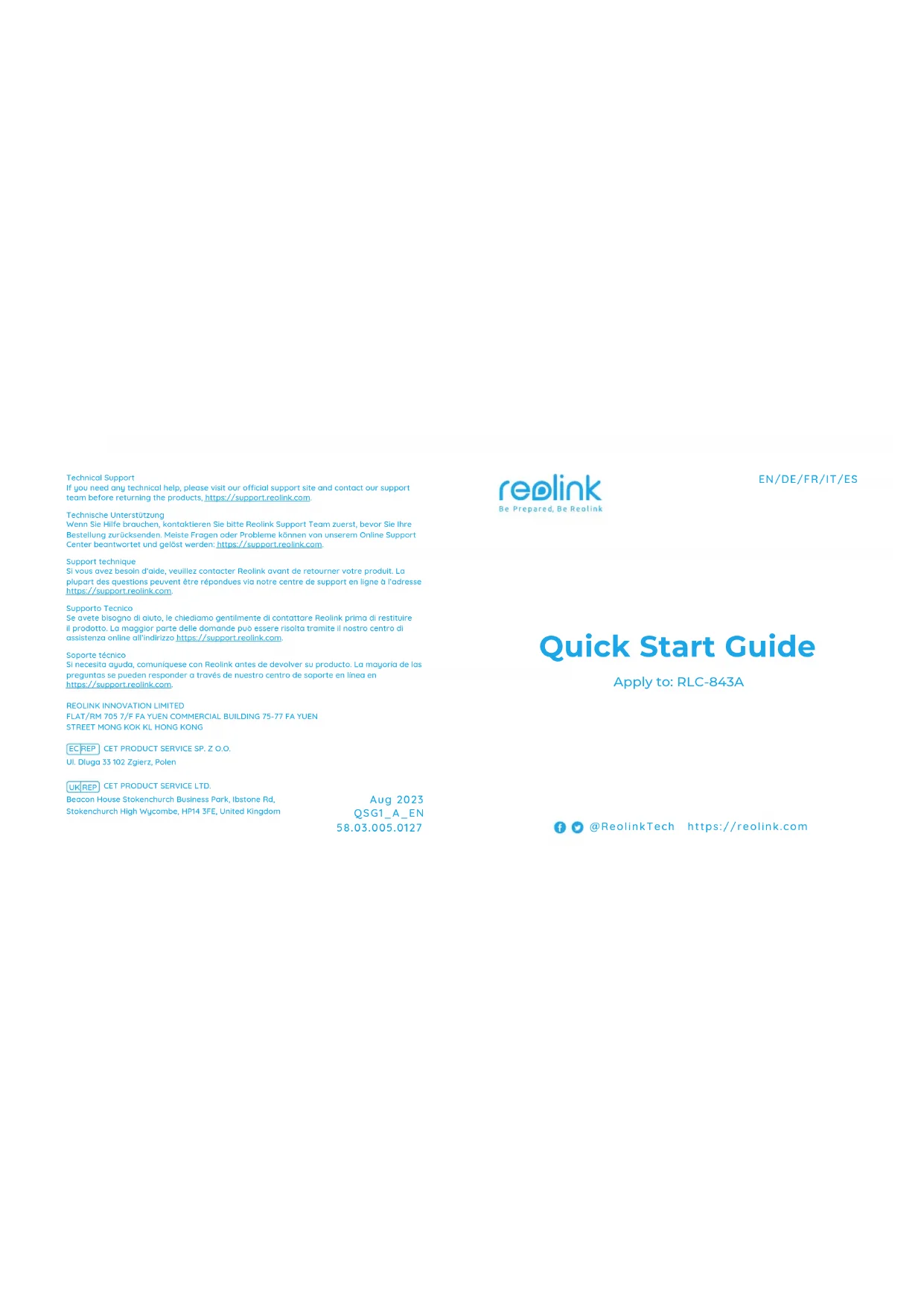 Retrouvez gratuitement la notice de l'appareil RLC-843A REOLINK au format PDF.