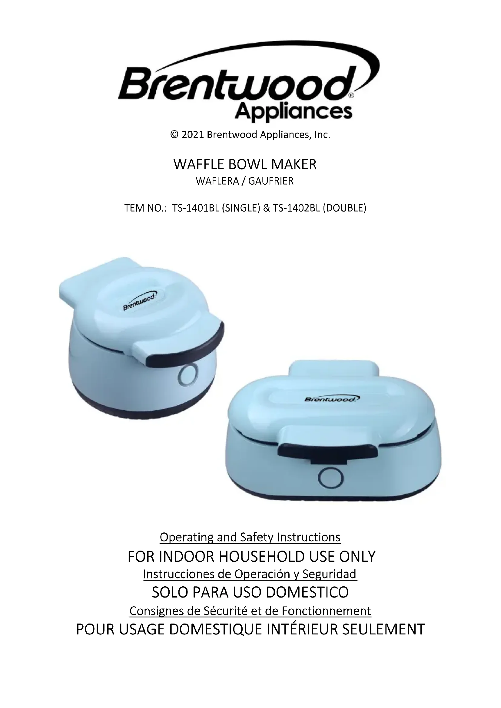 TS-1402BL - Gaufrier Brentwood - Notice d'utilisation et mode d'emploi gratuit
