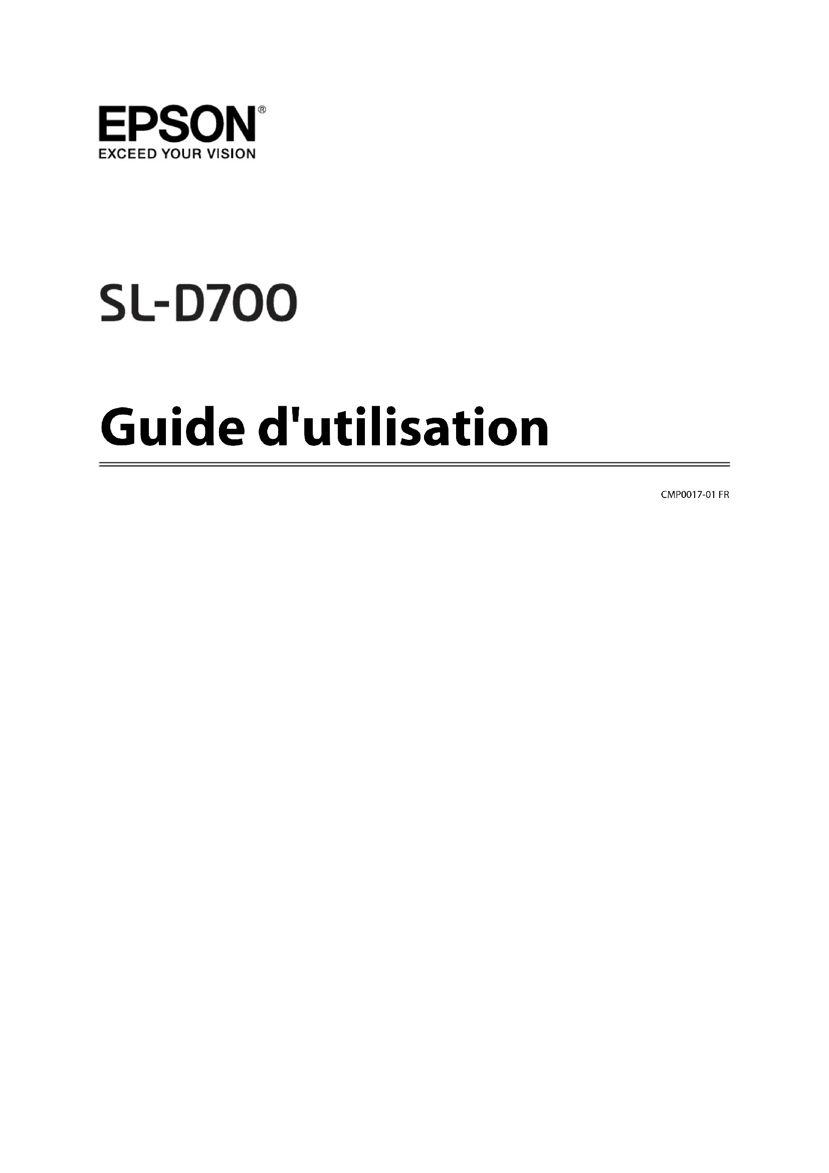 - sont des marques déposées d'Apple Inc. Avis général : les autres noms de produit utilisés dans le présent guide sont donnés uniquement à titre d'identification et peuvent être des marques de leurs détenteurs respectifs. Epson dénie toute responsabilité vis-à-vis de ces marques. © 2014 Seiko Epson Corporation. All rights reserved. SL-D700 Guide d'utilisation Droits d'auteur et marques 2Table des matières Droits d'auteur et marques Introduction Signification des symboles p. 5