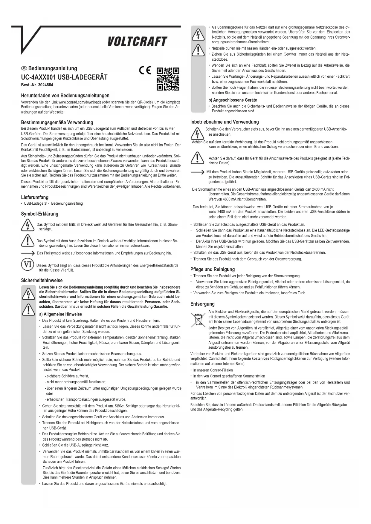 Retrouvez gratuitement la notice de l'appareil UC-4AXX001 VOLTCRAFT au format PDF.