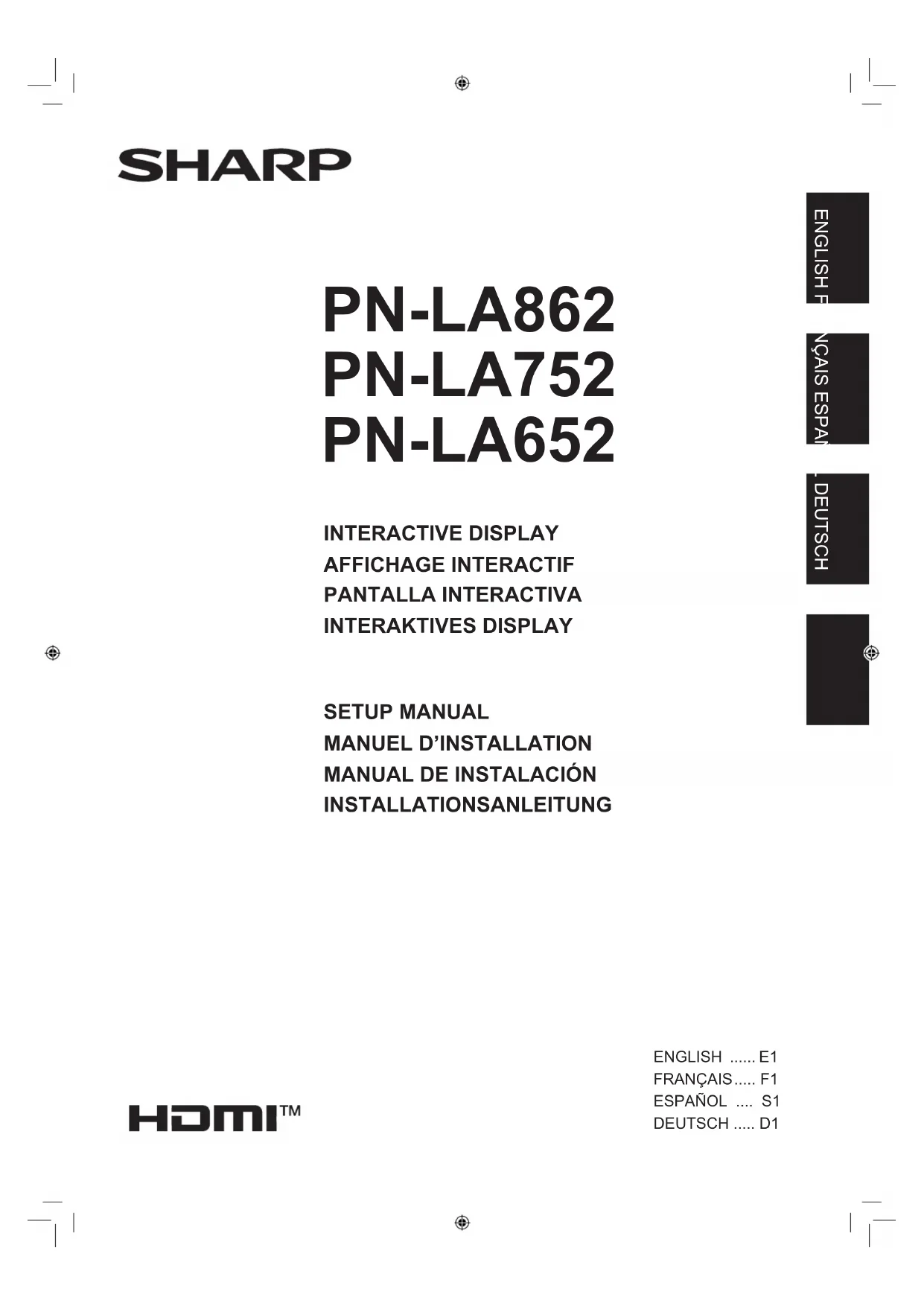 Téléchargez la notice de votre Moniteur au format PDF gratuitement ! Retrouvez votre notice PN-LA652 - SHARP et reprennez votre appareil électronique en main. Sur cette page sont publiés tous les documents nécessaires à l'utilisation de votre appareil PN-LA652 de la marque SHARP.