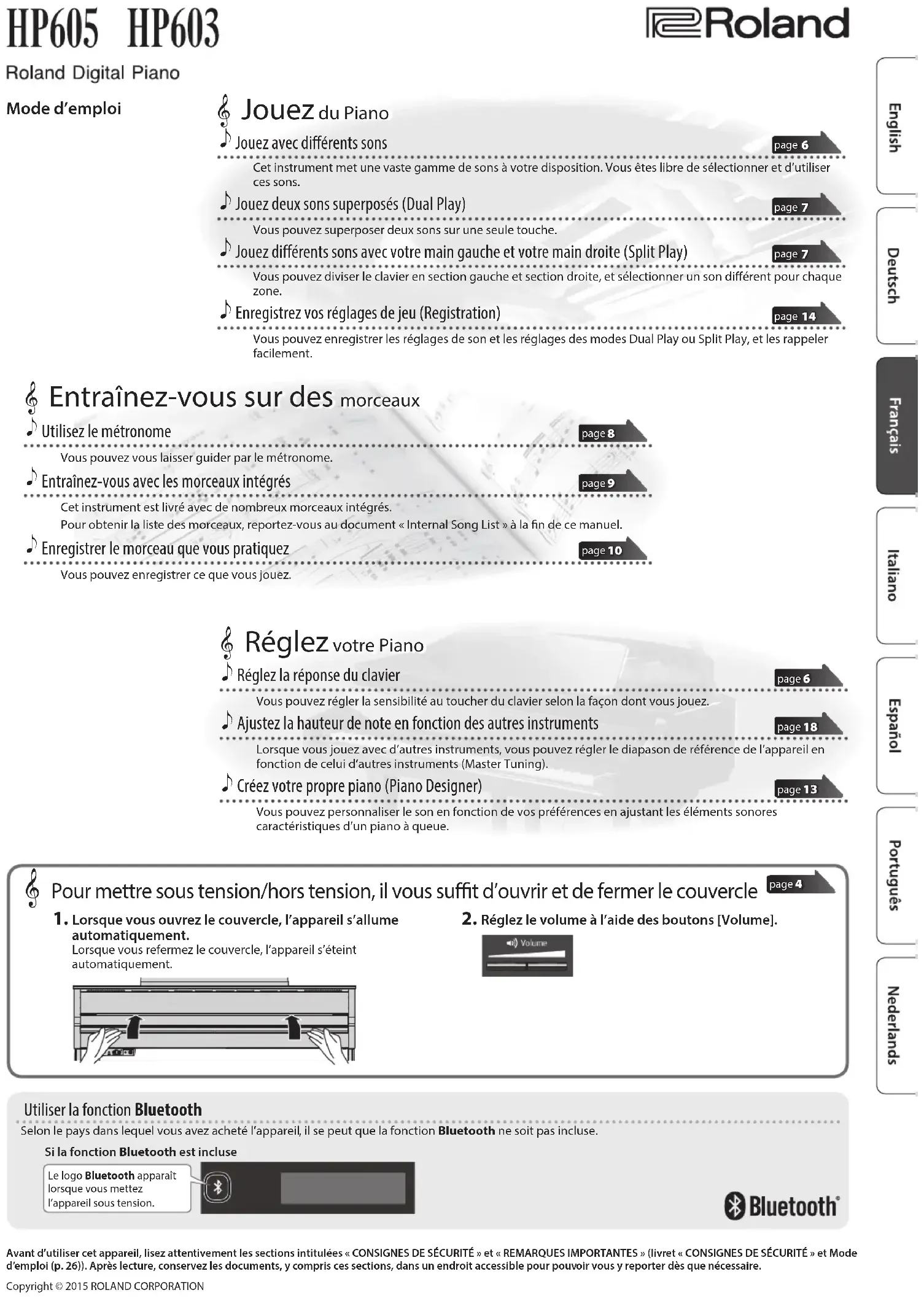 HP605 - Piano ROLAND - Notice d'utilisation et mode d'emploi gratuit