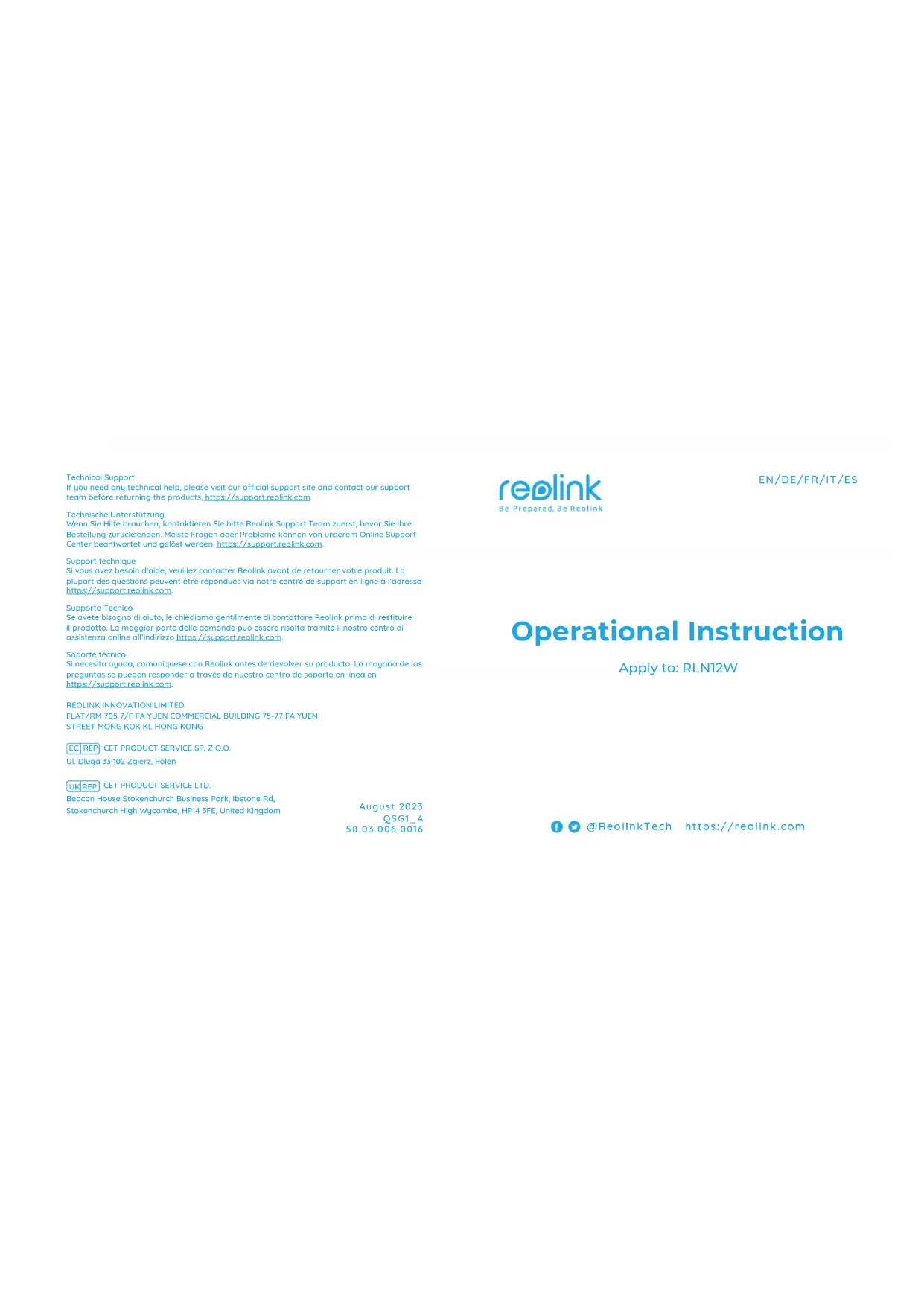 Retrouvez gratuitement la notice de l'appareil RLN12W REOLINK au format PDF.