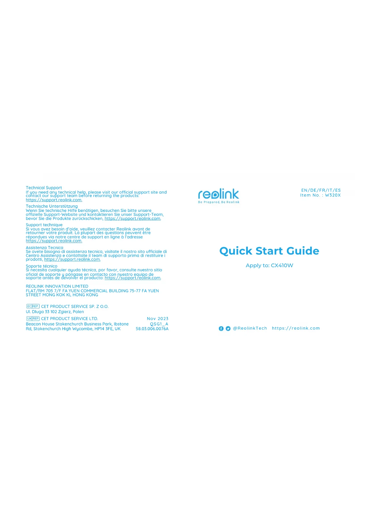 Retrouvez gratuitement la notice de l'appareil CX410W REOLINK au format PDF.