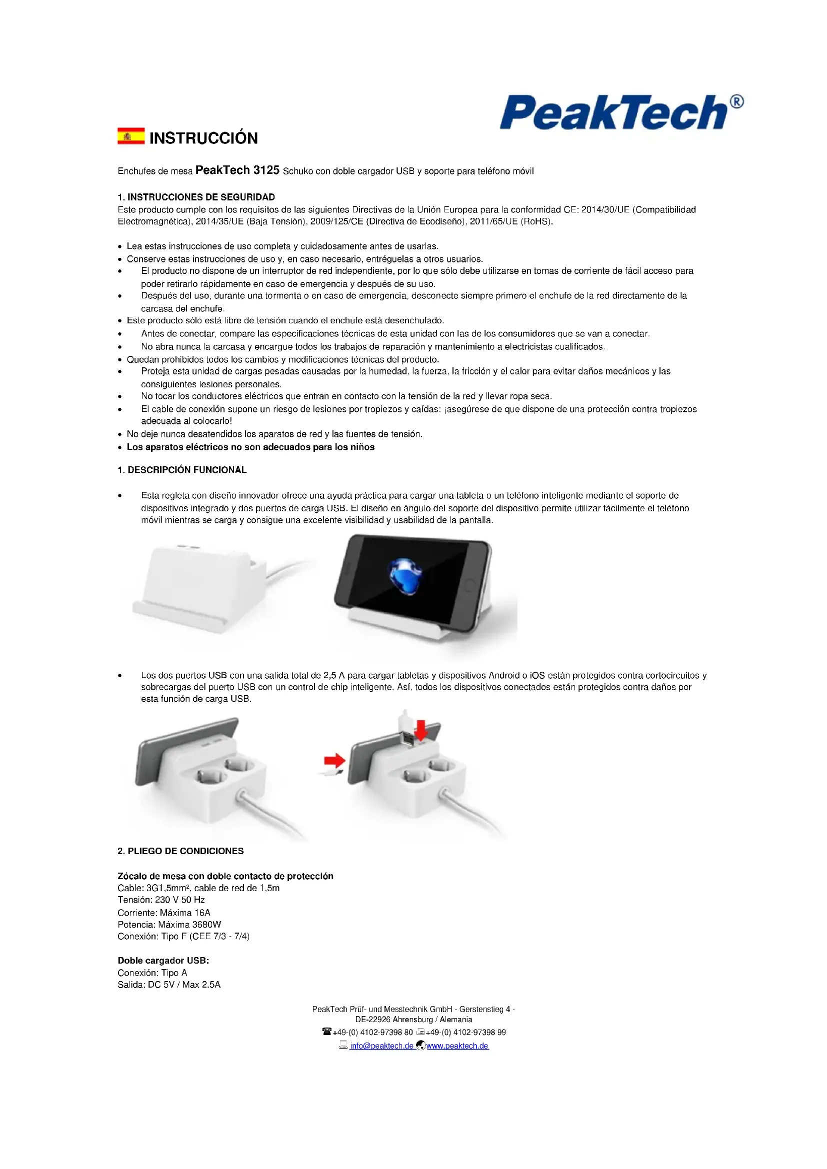3125 - Chargeur téléphone portable PeakTech - Notice d'utilisation et mode d'emploi gratuit