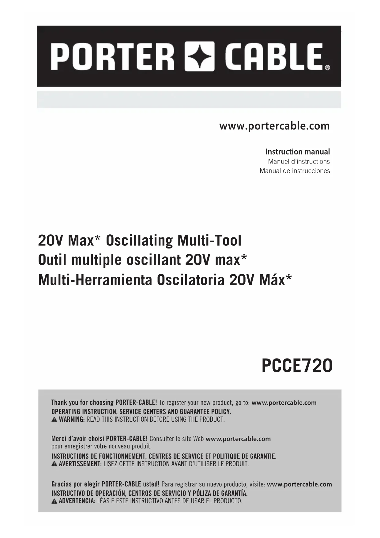 PCCE720 - Outils multifonctions Porter-Cable - Notice d'utilisation et mode d'emploi gratuit