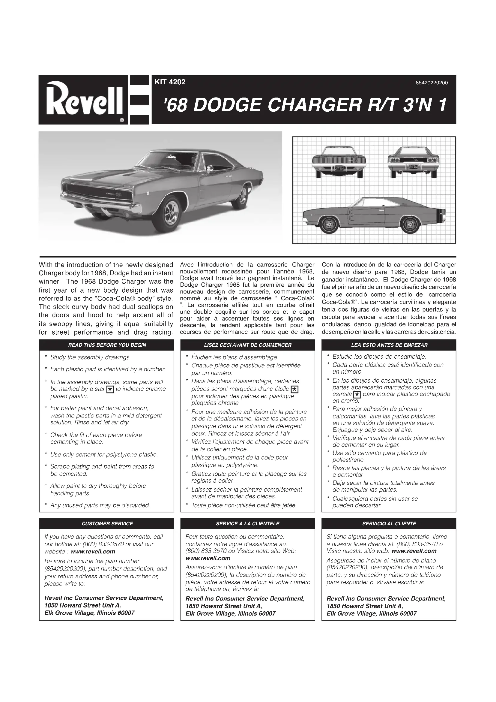 Retrouvez gratuitement la notice de l'appareil 1968 Dodge Charger R/T Revell au format PDF.
