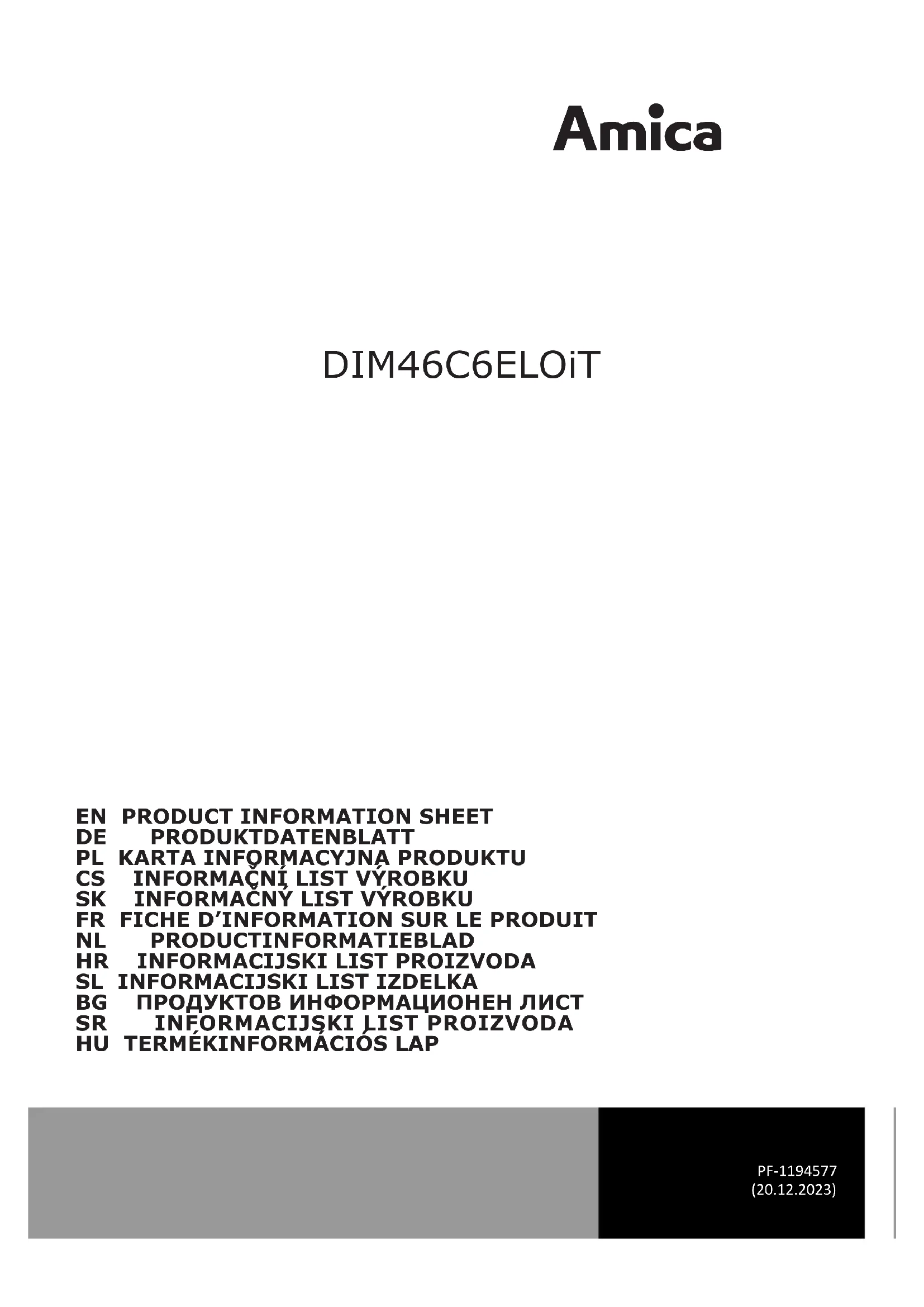 Retrouvez gratuitement la notice de l'appareil DIM46C6ELOiT AMICA au format PDF.