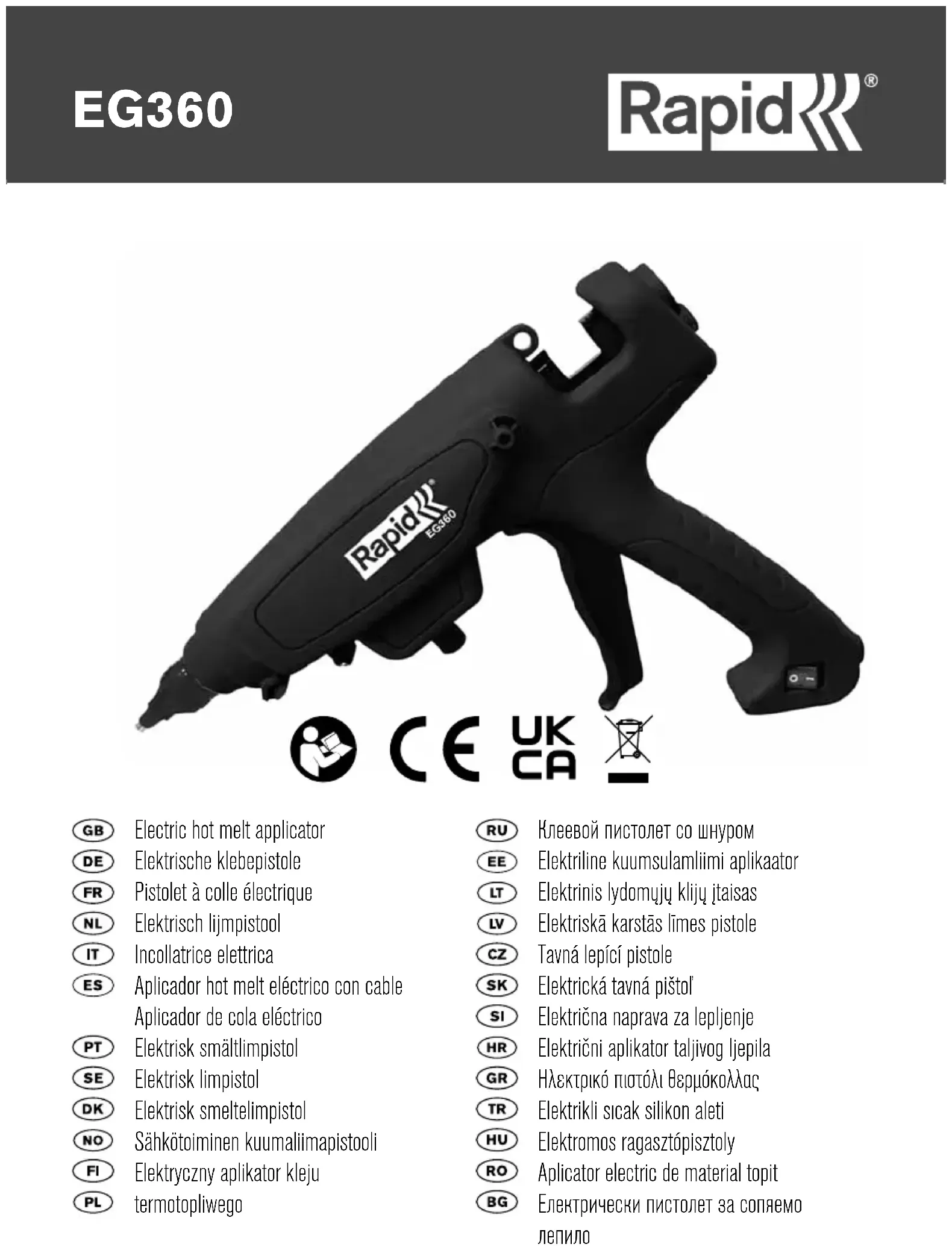 PRO EG360 - Pistolet à colle RAPID - Notice d'utilisation et mode d'emploi gratuit