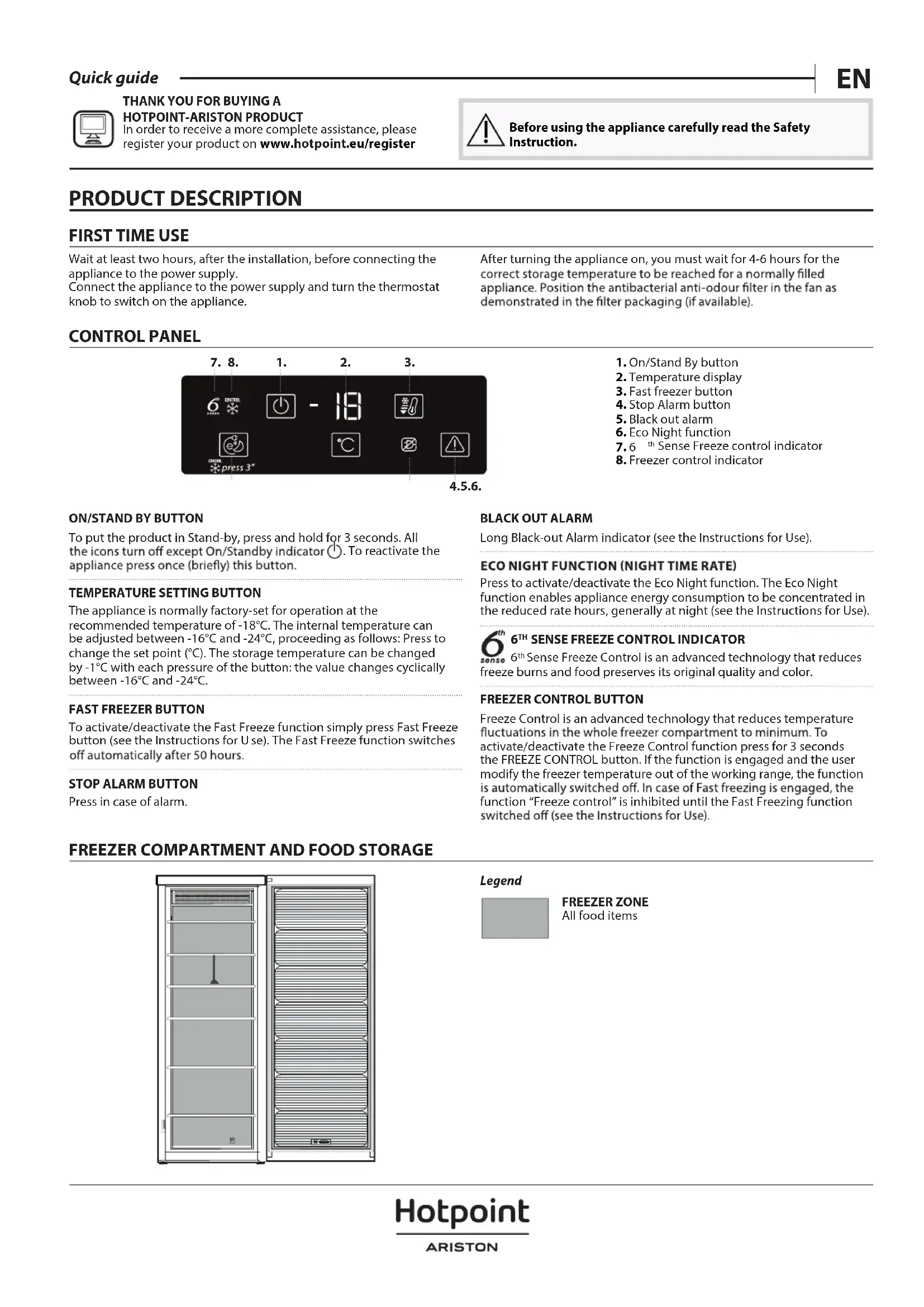 UHA6 F2C W - Congélateur HOTPOINT - Notice d'utilisation et mode d'emploi gratuit