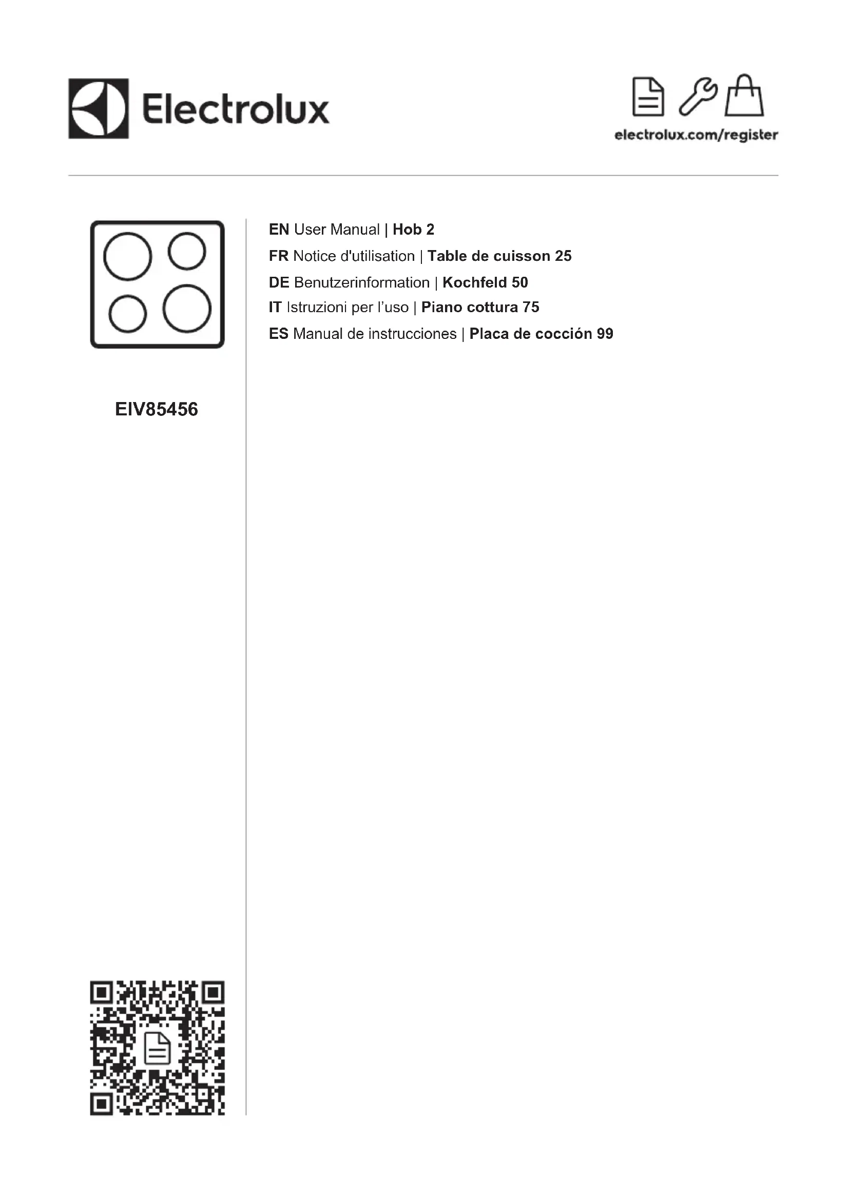 Retrouvez gratuitement la notice de l'appareil EIV85456 ELECTROLUX au format PDF.