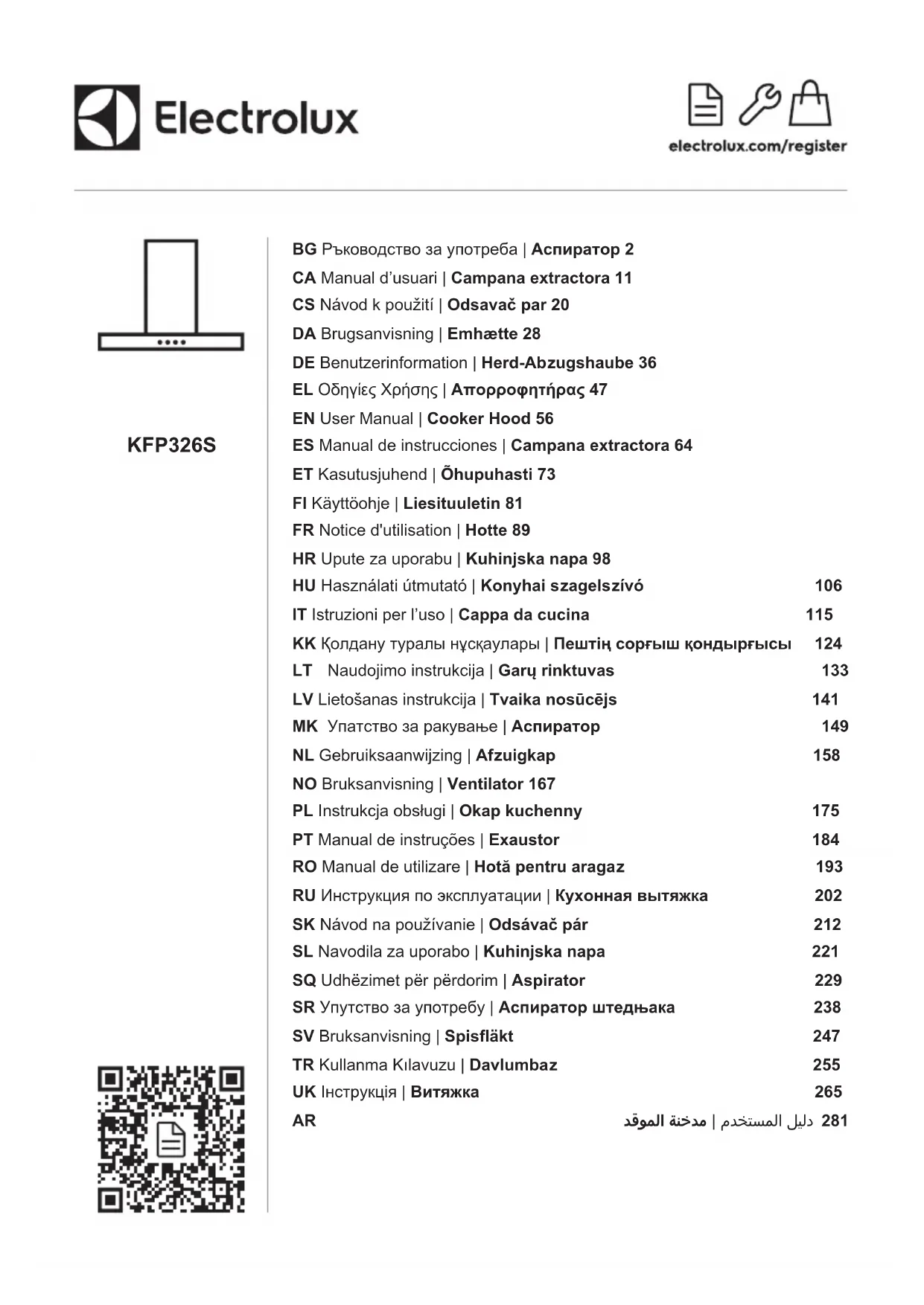 KFP326S - Hotte ELECTROLUX - Notice d'utilisation et mode d'emploi gratuit