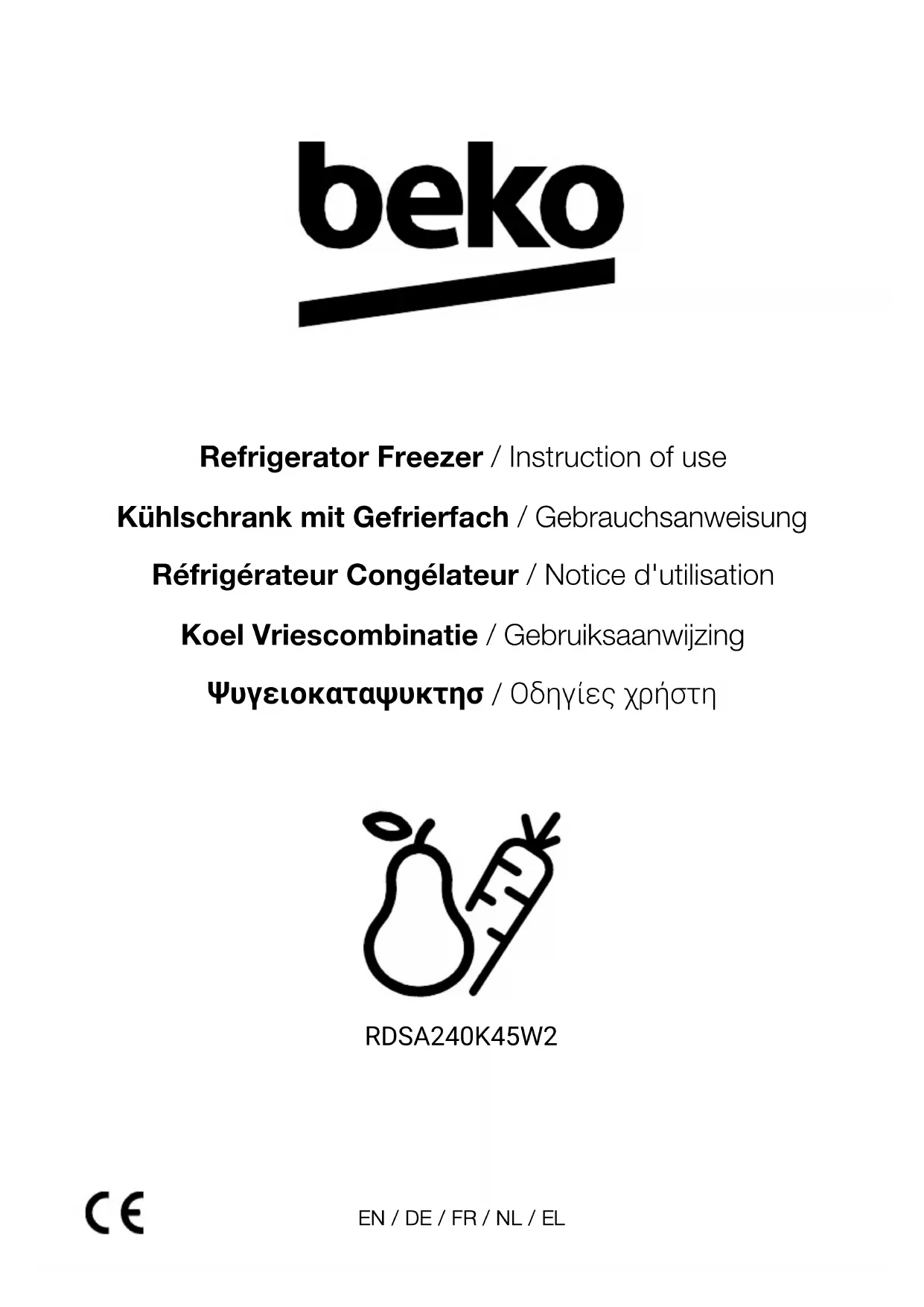 RDSA240K45W2 - Réfrigérateur BEKO - Notice d'utilisation et mode d'emploi gratuit
