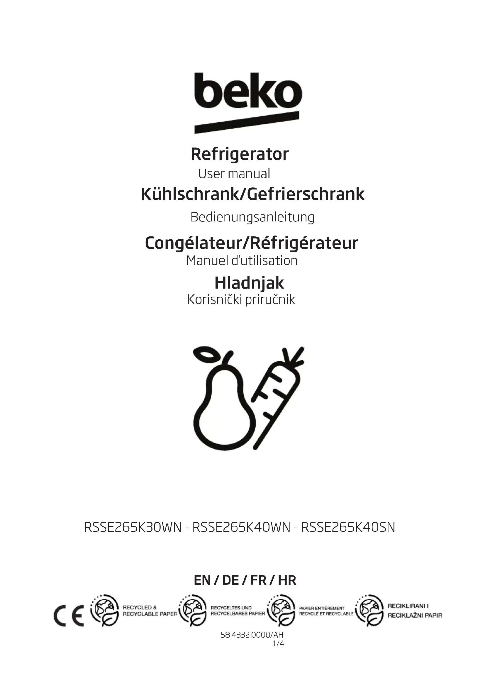 RSSE265K40SN - Réfrigérateur BEKO - Notice d'utilisation et mode d'emploi gratuit