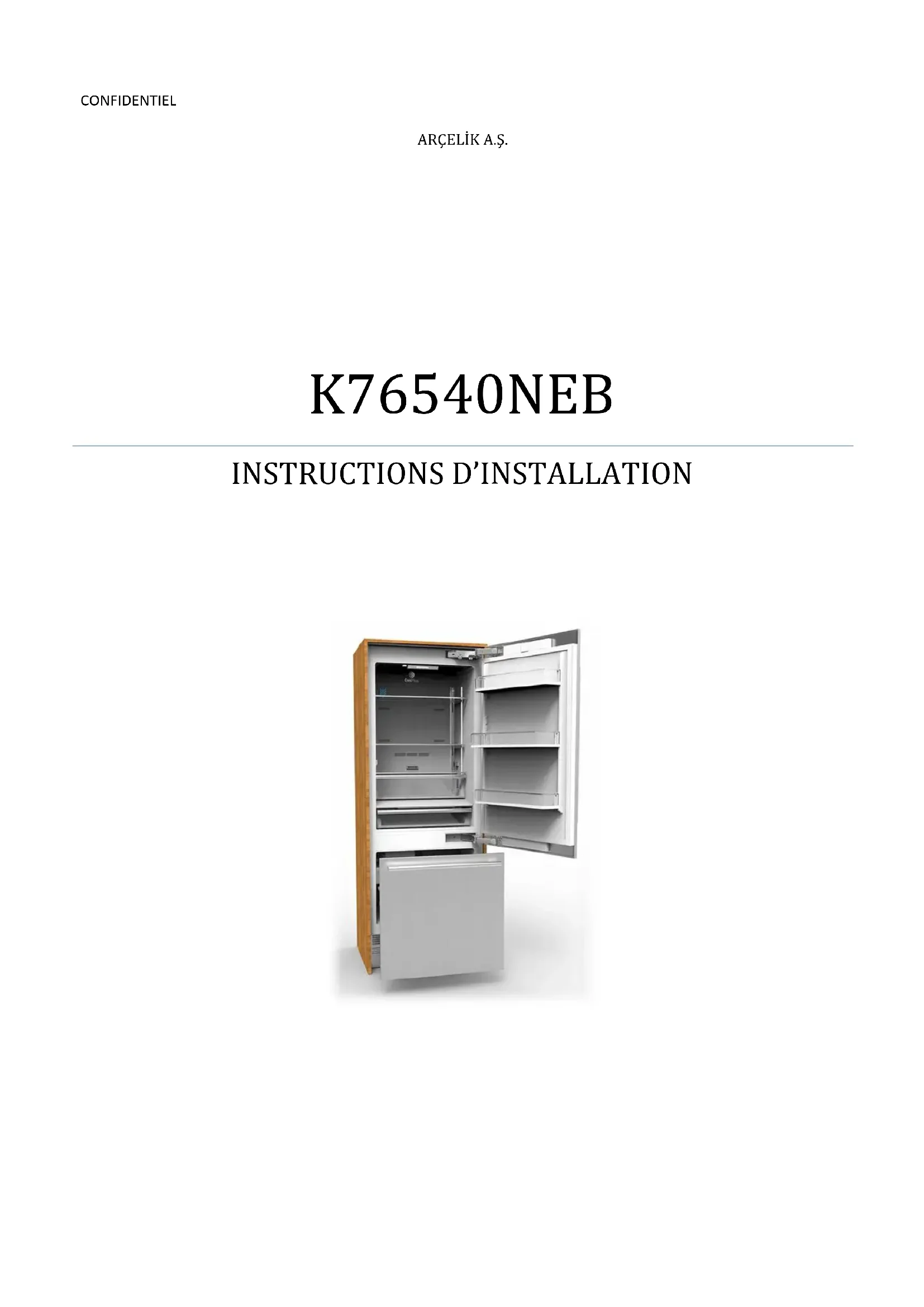 ATTENTION : Retirez le ruban adhésif de la porte supérieure du produit uniquement lorsque le réfrigérateur est placé dans l’armoire. Risque de basculementCONFIDENTIEL