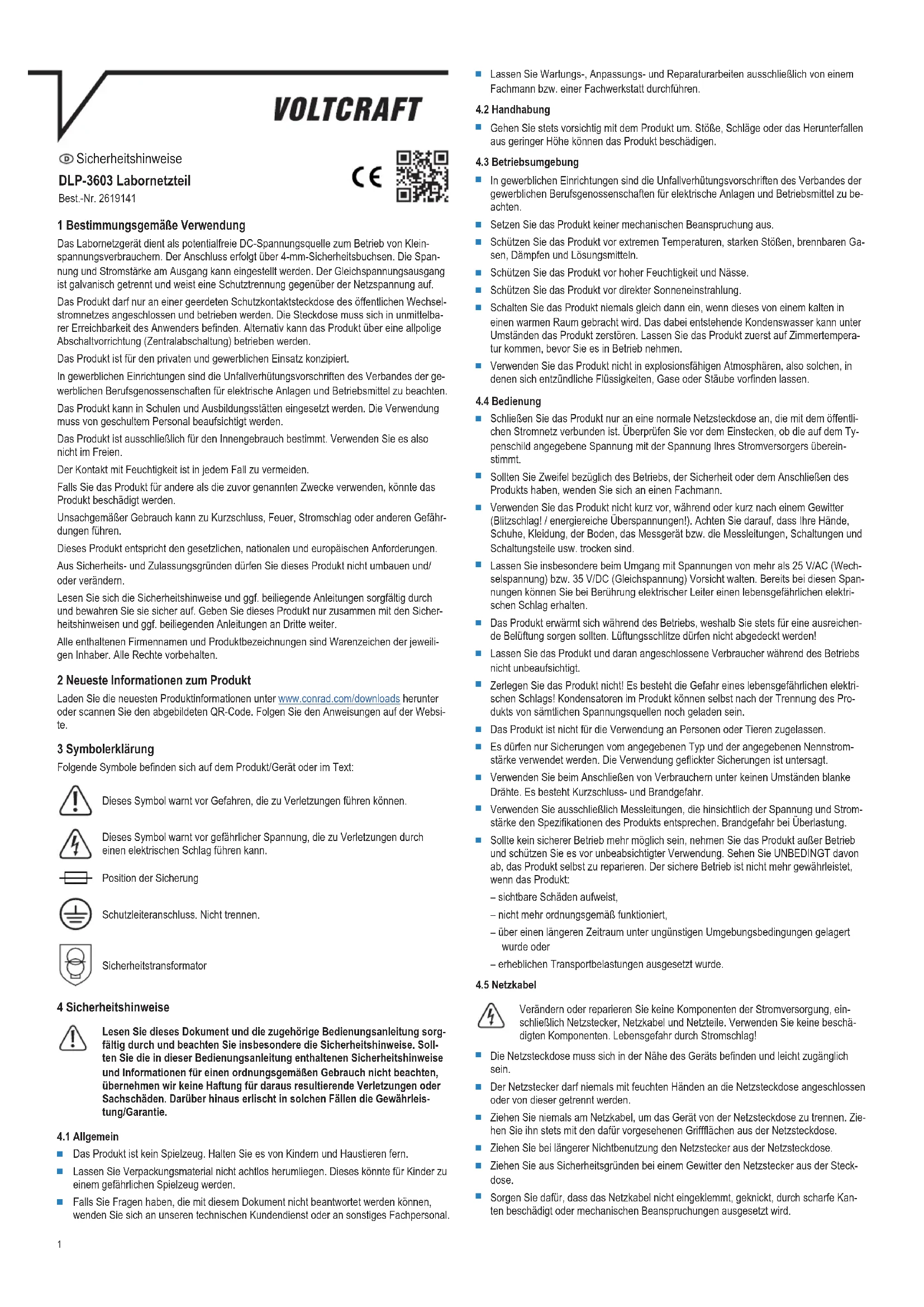 Retrouvez gratuitement la notice de l'appareil DLP-3603 VOLTCRAFT au format PDF.