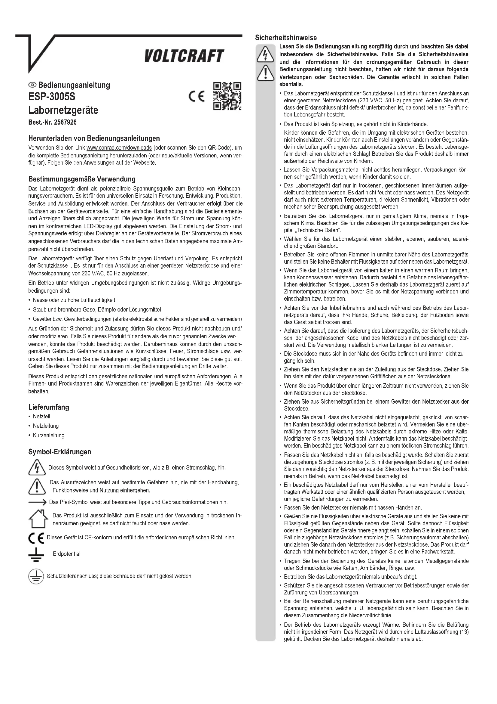 Retrouvez gratuitement la notice de l'appareil ESP-3005S VOLTCRAFT au format PDF.