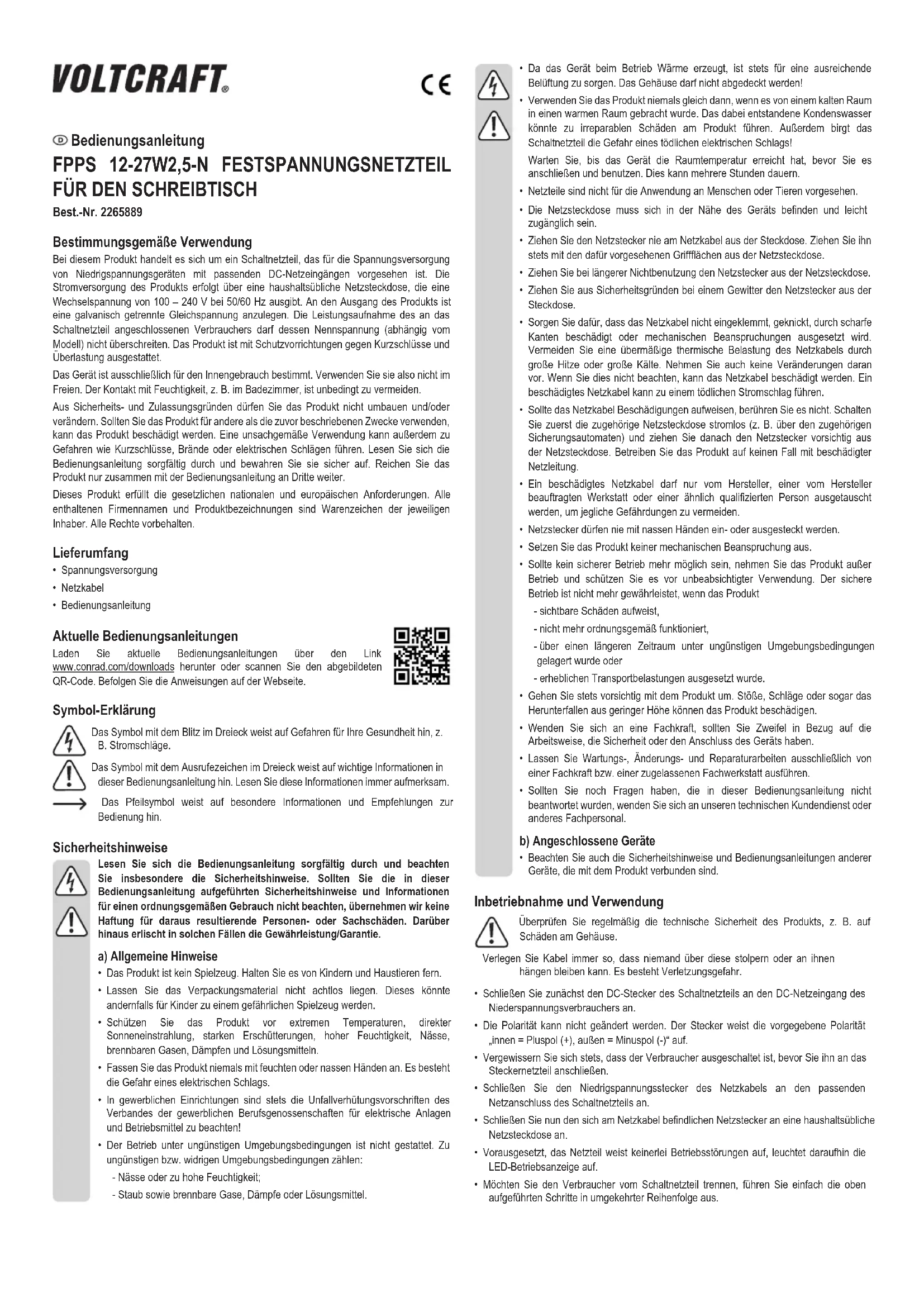 Retrouvez gratuitement la notice de l'appareil FPPS 12-27W2.5-N VOLTCRAFT au format PDF.