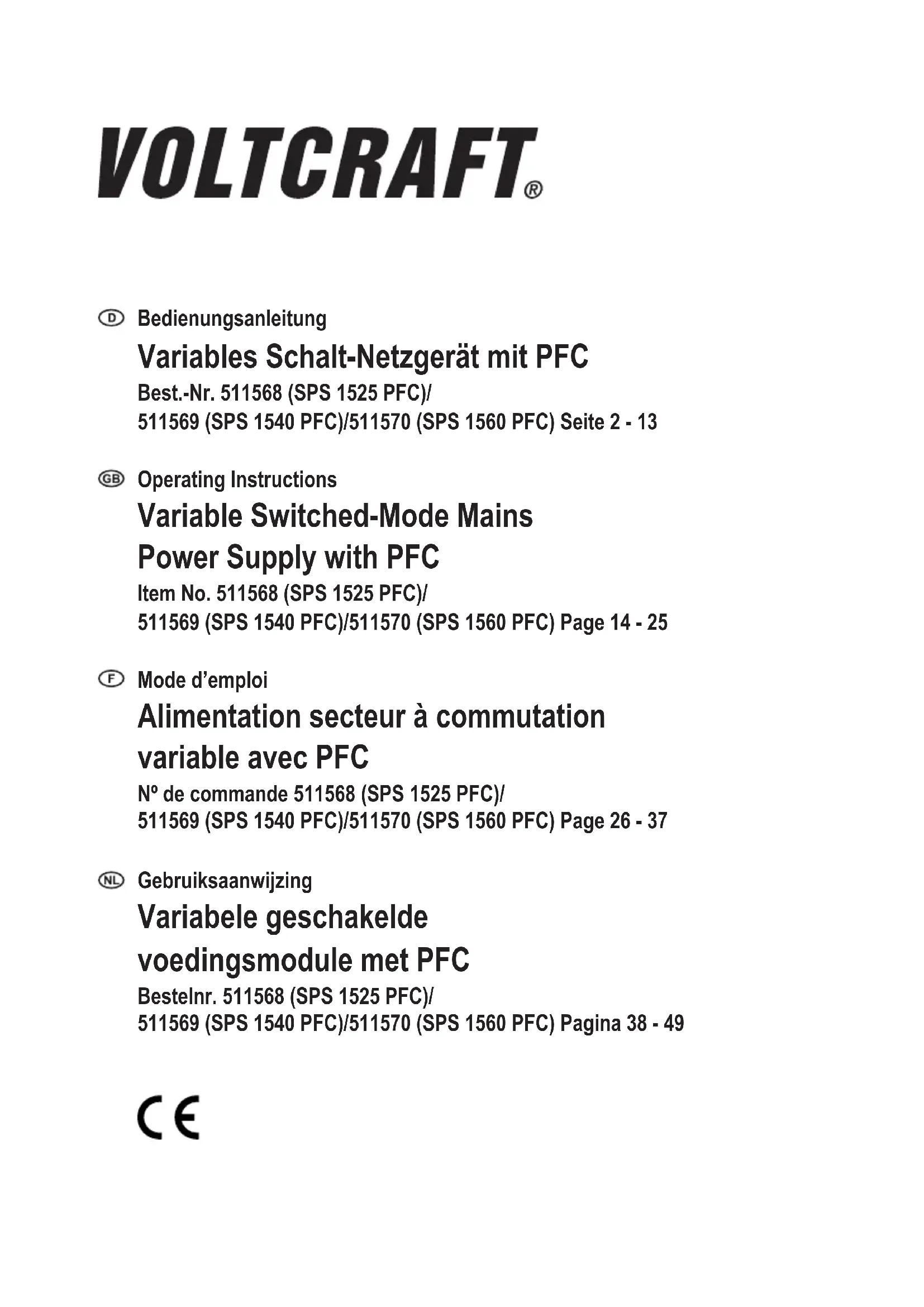 Retrouvez gratuitement la notice de l'appareil SPS 1525 PFC VOLTCRAFT au format PDF.