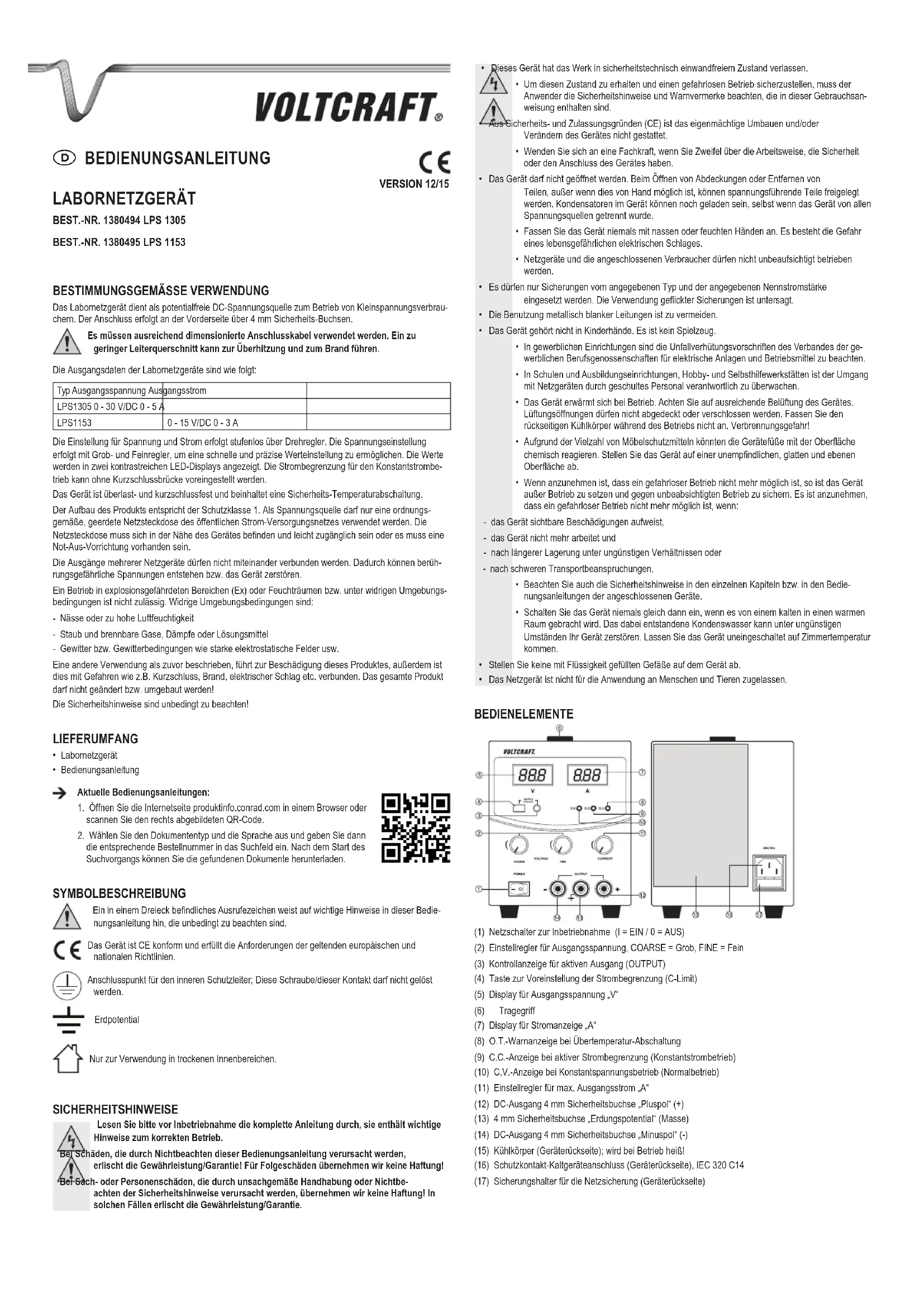 LPS1153 - Non catégorisé VOLTCRAFT - Notice d'utilisation et mode d'emploi gratuit