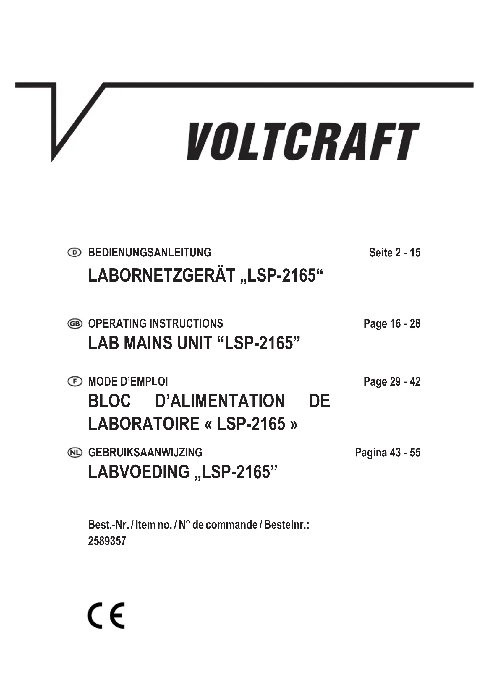 Retrouvez gratuitement la notice de l'appareil LSP-2165 VOLTCRAFT au format PDF.