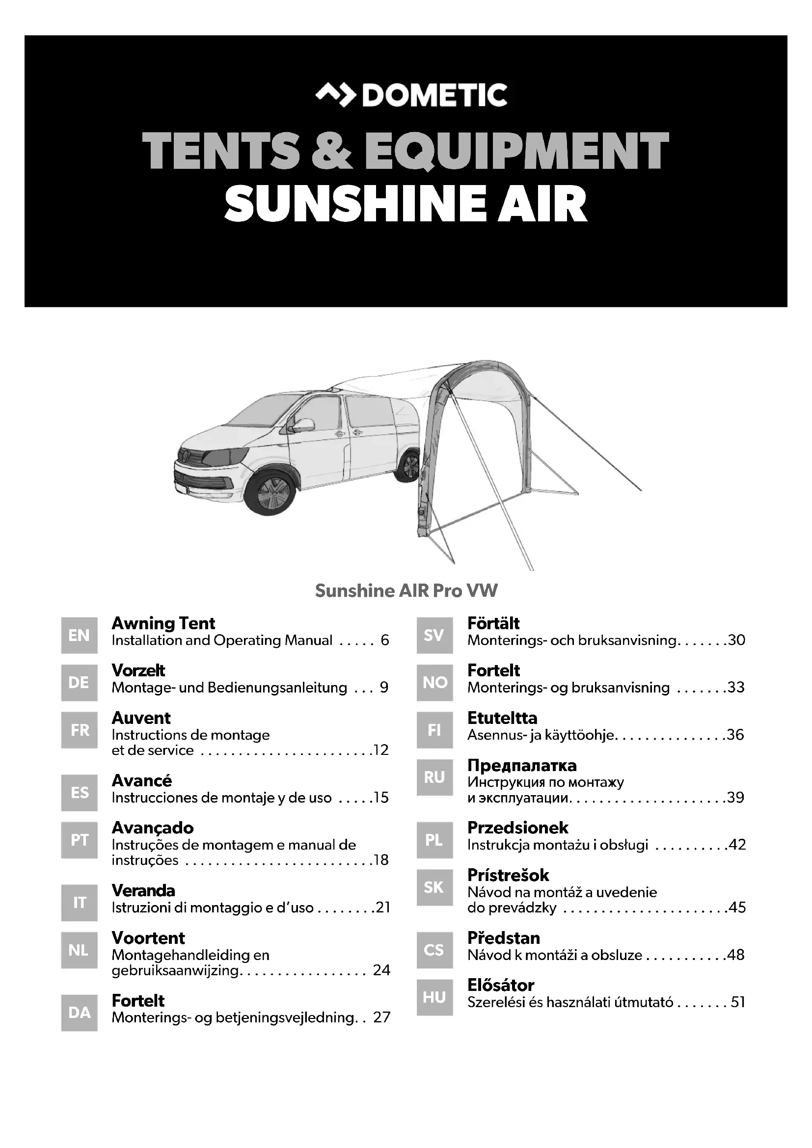 Sunshine AIR Pro VW - Tente DOMETIC - Notice d'utilisation et mode d'emploi gratuit