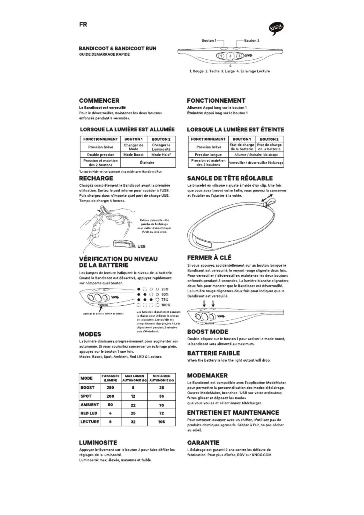 Bandicoot 250 - Lampe de poche Knog - Notice d'utilisation et mode d'emploi gratuit