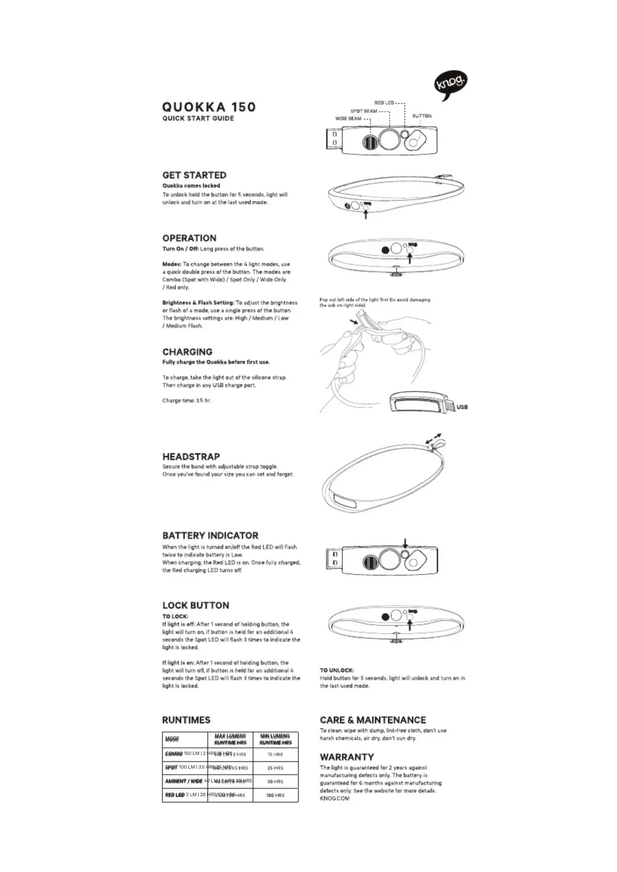 Quokka 150 - Lampe de poche Knog - Notice d'utilisation et mode d'emploi gratuit