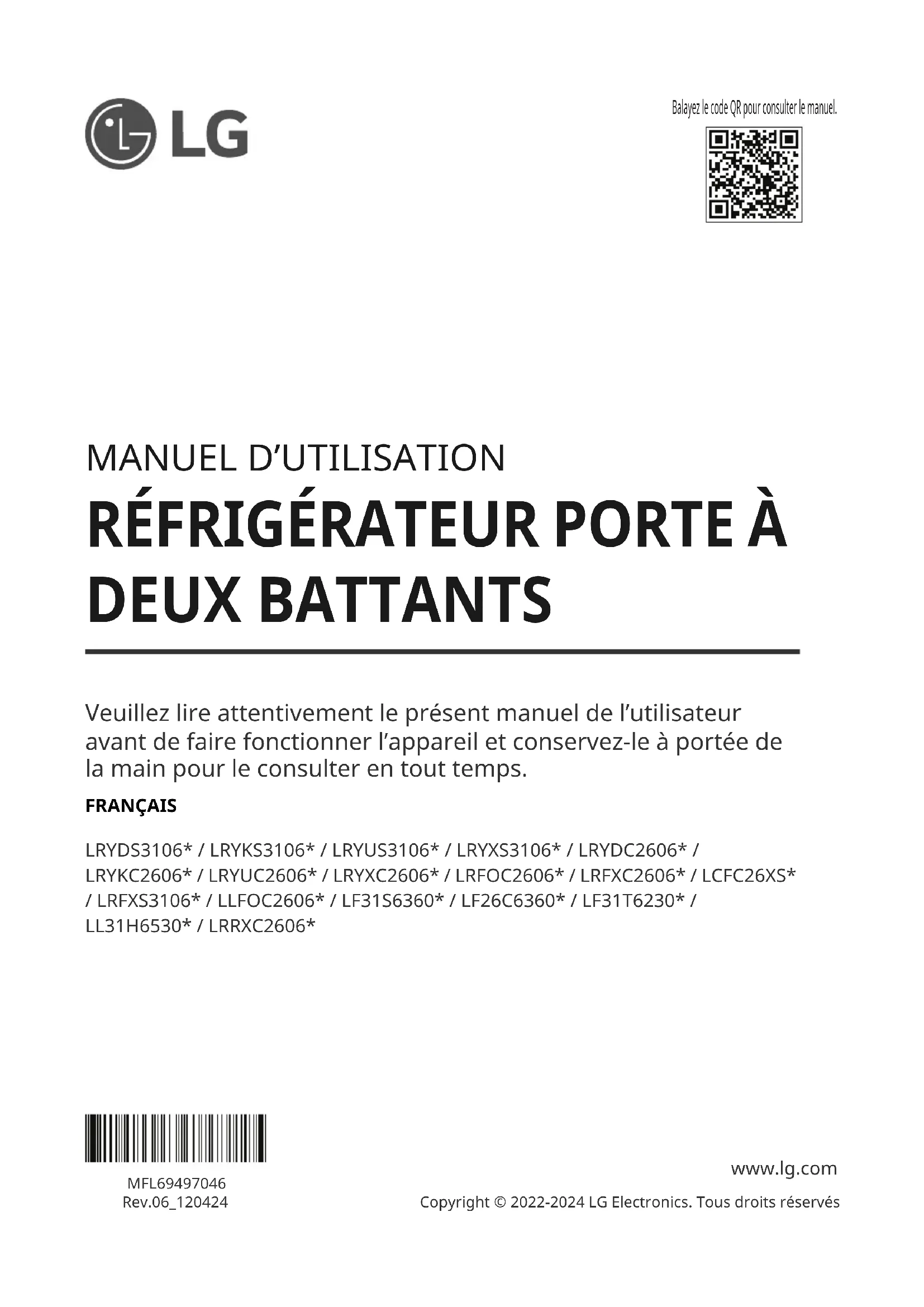 MFL69497046Rev.06_120424 www.lg.com Copyright © 2022-2024 LG Electronics. Tous droits réservés Balayez le code QR pour consulter le manuel.TABLE DES MATIÈRES