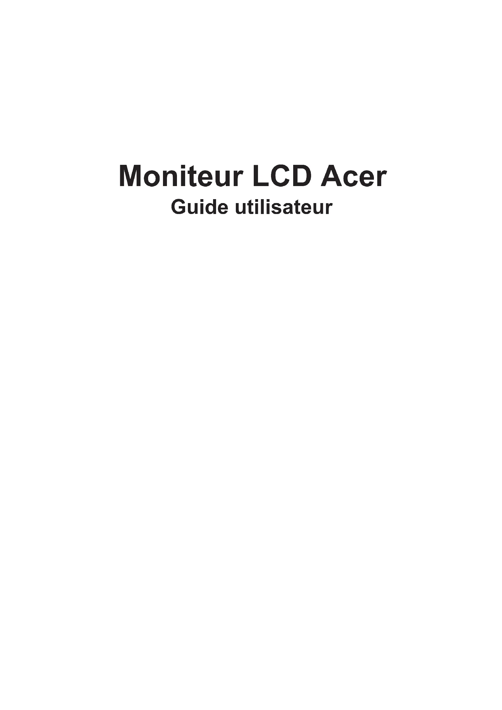 Moniteur LCD Acer Guide utilisateurFrançais Copyright © 2022. Acer Incorporated. Tous droits réservés. Guide de l’utilisateur du moniteur LCD Acer Première édition : 07/2022 usage particulier. Notez le numéro de modèle, le numéro de série, la date d’achat et le lieu d’achat dans l’espace prévu ci-dessous. Le numéro de modèle et le numéro de série sont enregistrés l’achat. d’Acer Incorporated. Guide de l’utilisateur du moniteur LCD Acer Numéro de modèle : ___________________________ Numéro de série : _____________________________ Date d’achat : ________________________________ Lieu d’achat : _________________________________Français Informations relatives à votre sécurité et à votre confort Instructions de sécurité Notes spéciales relatives aux moniteurs LCD