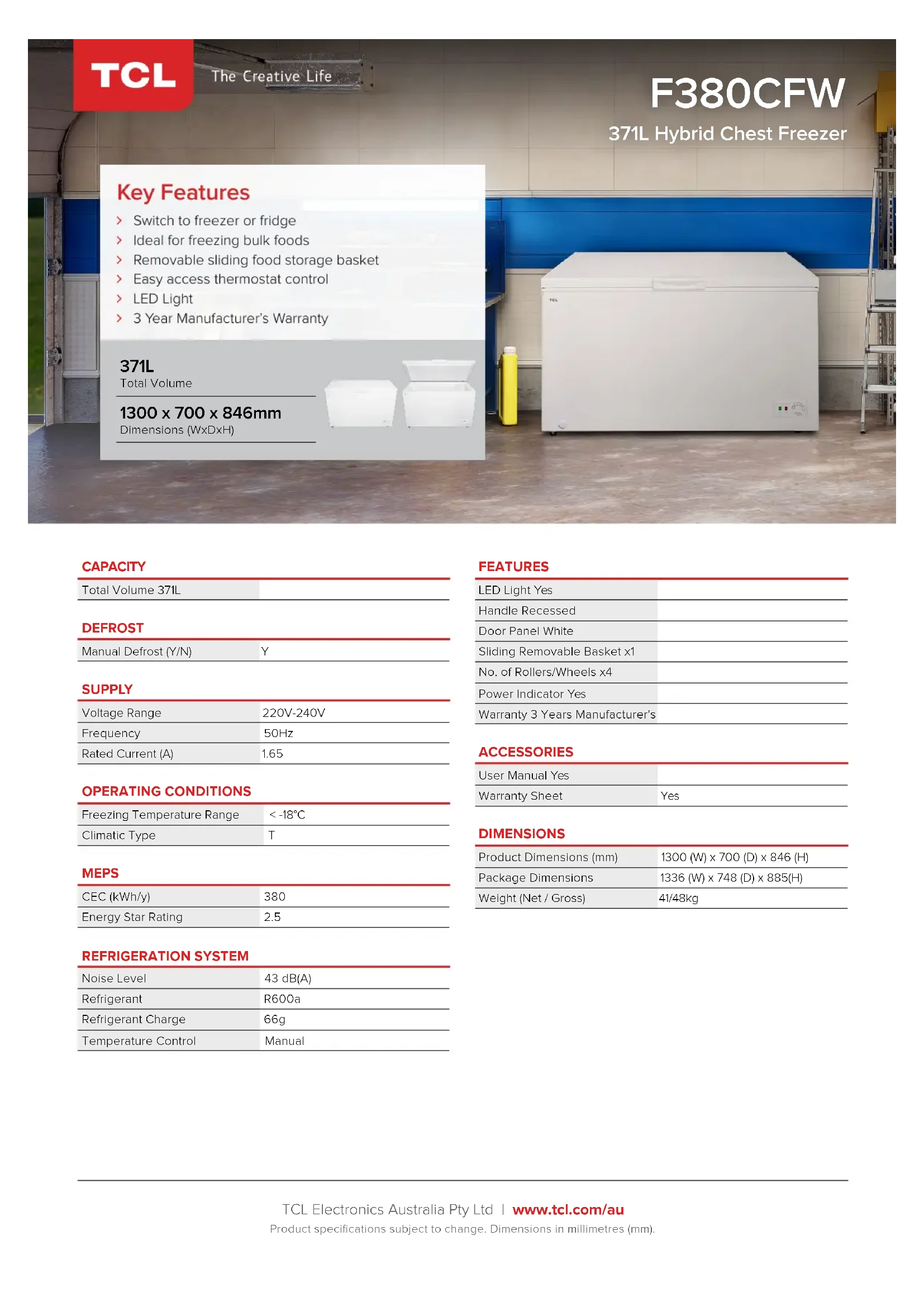 F380CFW - Congélateur TCL - Notice d'utilisation et mode d'emploi gratuit