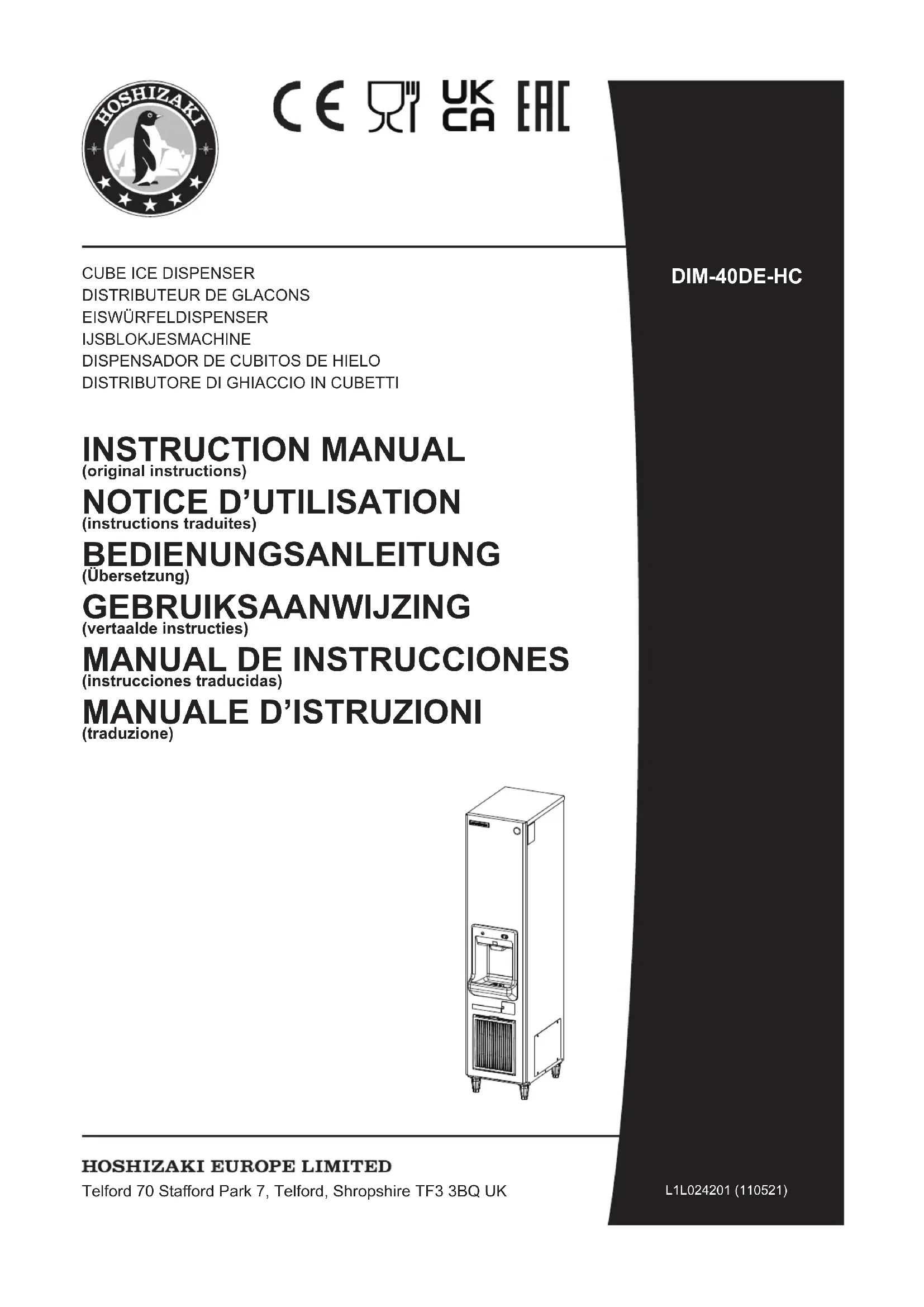 Retrouvez gratuitement la notice de l'appareil DIM-40DE-HC Hoshizaki au format PDF.