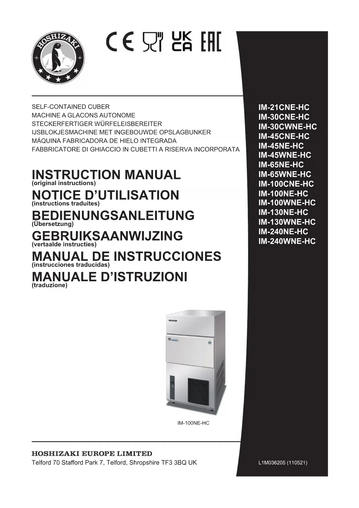 Retrouvez gratuitement la notice de l'appareil IM-240WNE-HC Hoshizaki au format PDF.