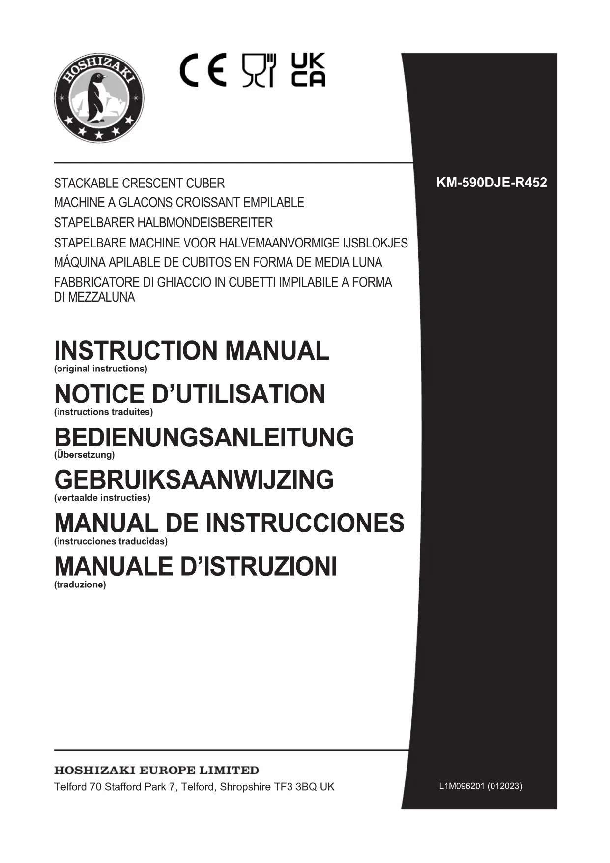 Retrouvez gratuitement la notice de l'appareil KM-590DJE-R452 Hoshizaki au format PDF.