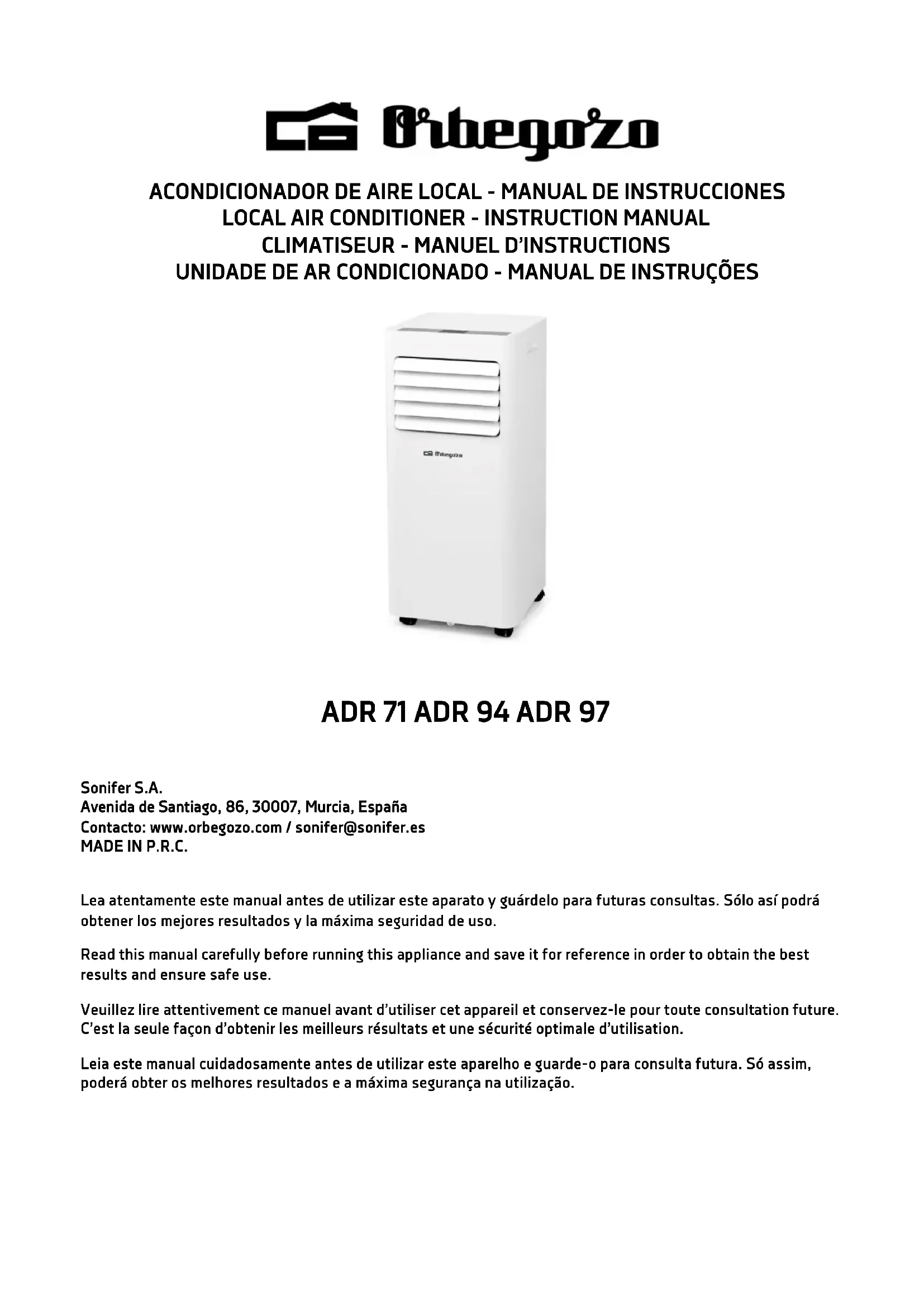 Retrouvez gratuitement la notice de l'appareil ADR 71 Orbegozo au format PDF.